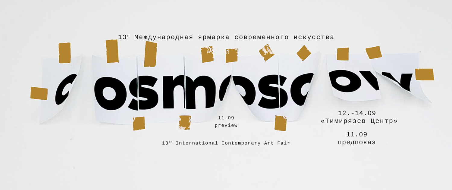 Традиционно на Cosmoscow были представлены почти 100 галерей современного искусства из разных городов России и других стран и делились на секции: База, Контур, Тираж, Дизайн и Сообщество. Концепция стиля ярмарки Cosmoscow в этом году строился на жесте временной фиксации — на репетиционной, монтажной природе экспозиционного пространства.