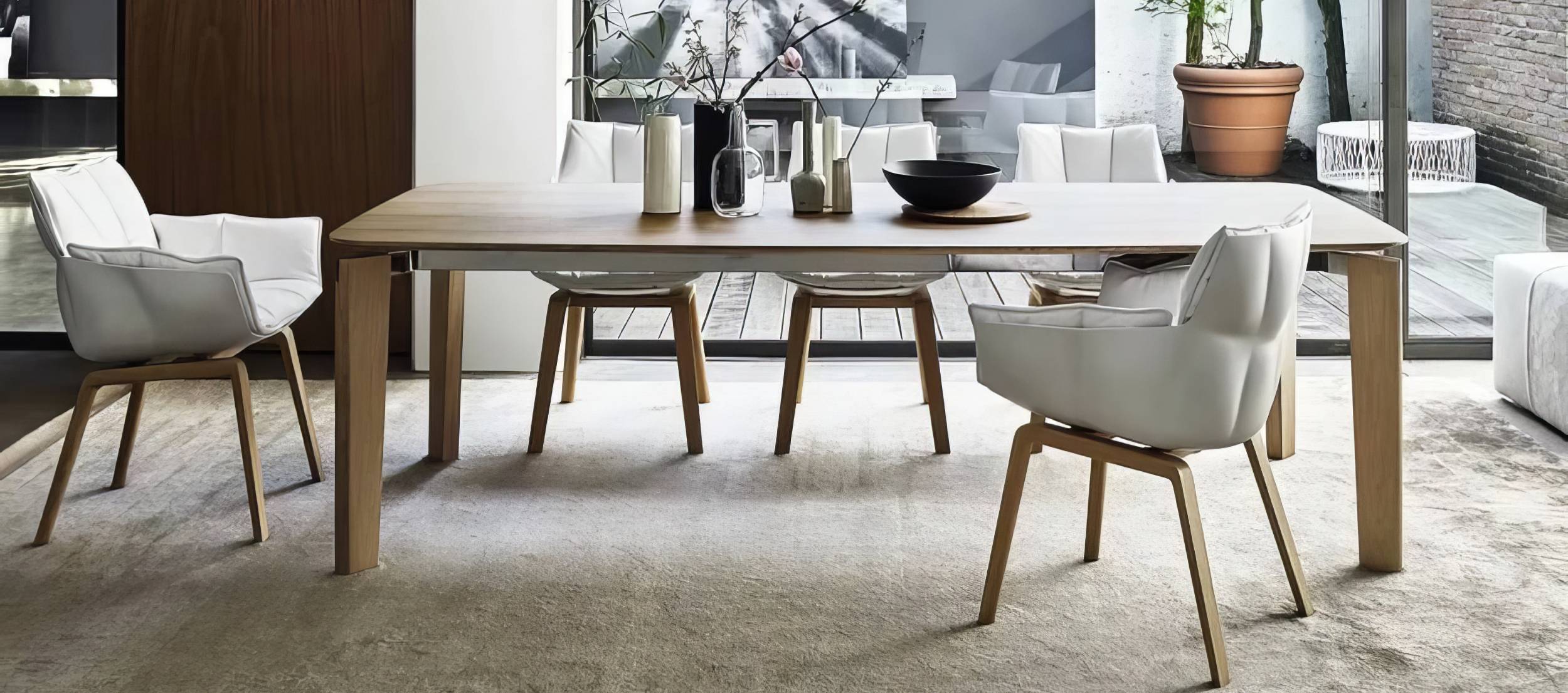 Обеденные столы становятся центром интерьера — местом общения, встреч и спокойных семейных ритуалов. Их конструкции объединяют устойчивость и лёгкость, а разнообразие форм, размеров и отделок позволяет адаптировать модель под любой стиль — от строгого минимализма до мягких, тёплых интерьеров. Журнальные и кофейные столики работают как выразительные акценты: компактные, функциональные, они дополняют зону отдыха и формируют удобную композицию рядом с диванами и креслами бренда, усиливая ощущение целостности пространства.
