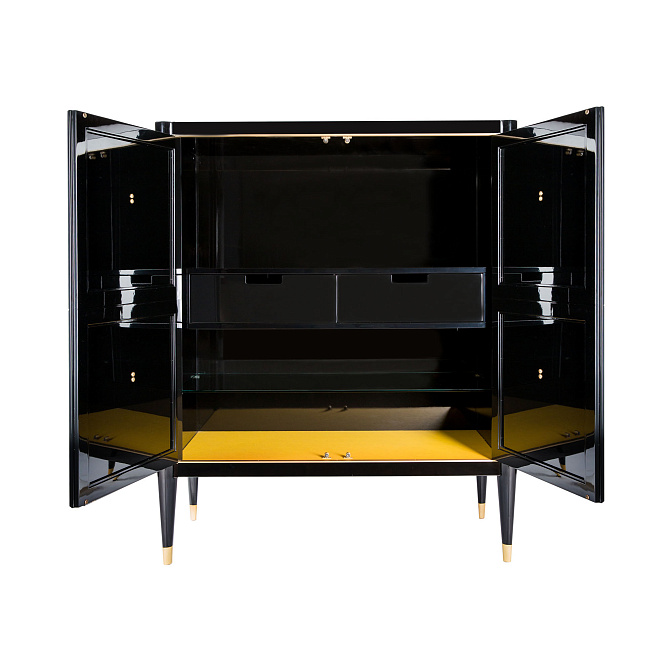 Буфет Galimberti Nino Topazio cabinet 14138 + MA200*4 лак глянцевый черный, ручки lolita grande матовая полированная латунь, эко-кожа PS002 lemon