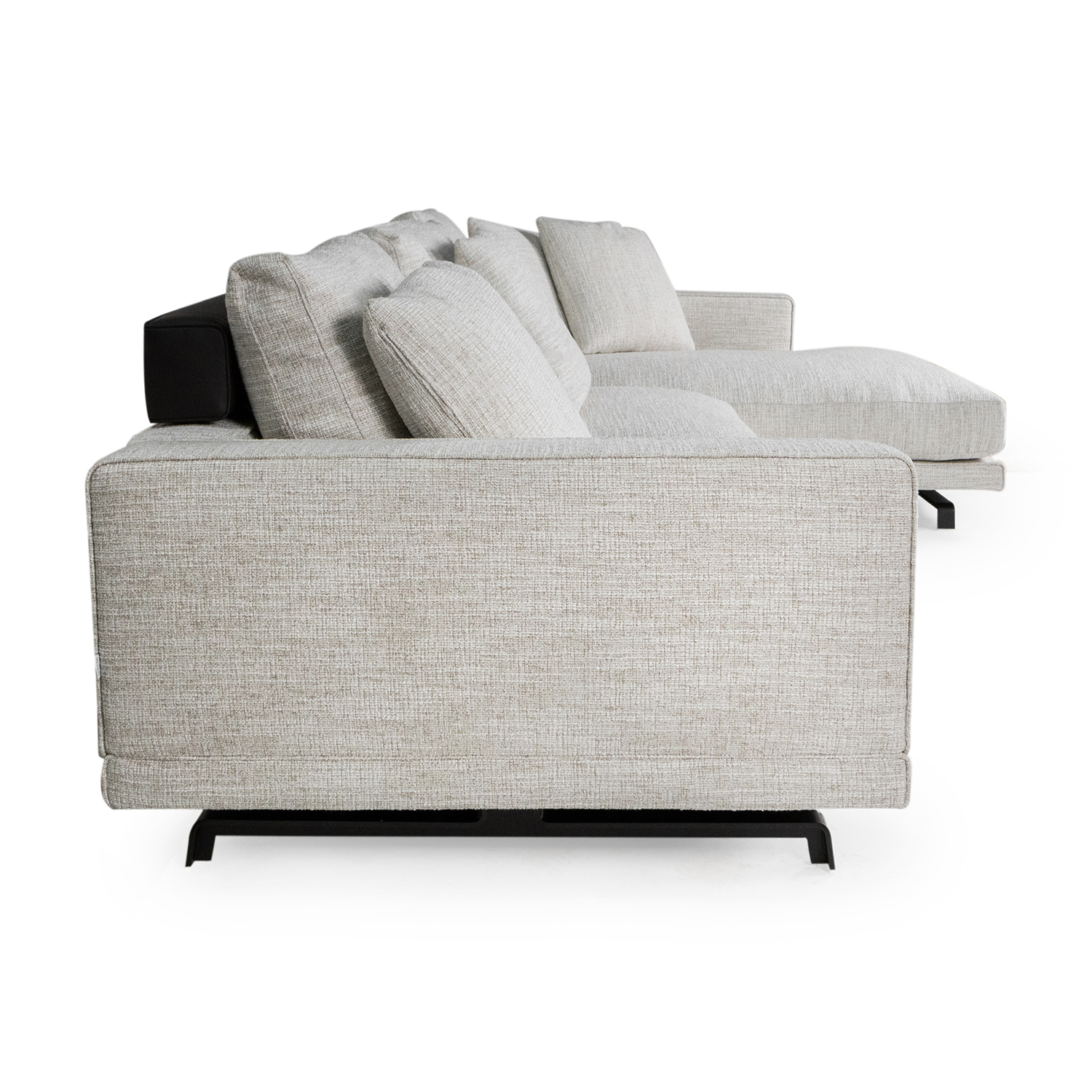 Диван Molteni Octave TE225ASX+CL105DX+CSC90x3+CPT75x2+CU50x4+CPT60 ткань WI211 William+кожа L147 Dark Brown, основание-металл Painted Pewter