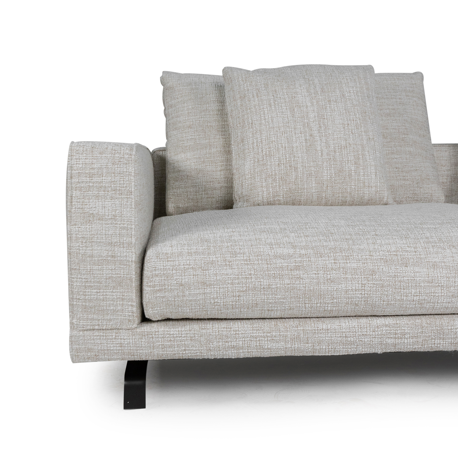 Диван Molteni Octave, разработанный дизайнером Vincent Van Duysen, отличается лаконичным дизайном с прямыми линиями и чёткими геометрическими формами. Его обивка выполнена в универсальном светло-сером цвете, который легко вписывается в различные интерьеры. Широкие подлокотники и модули с низкой посадкой обеспечивают комфортное расположение. Металлические опоры подчёркивают современный характер дивана и визуально облегчают его конструкцию.