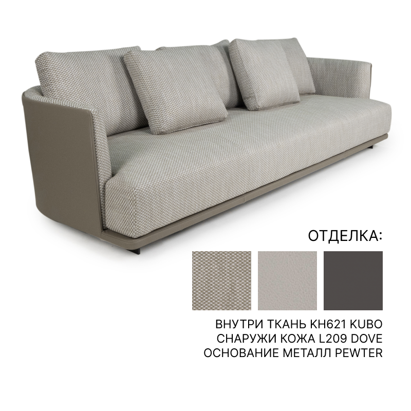 Диван Roda BASKET sofa — это сочетание современных тенденций дизайна и практичности. Основание из металла обеспечивает долговечность и прочность конструкции, в то время как тканевая обивка серого цвета придает ему утонченный и сдержанный вид.