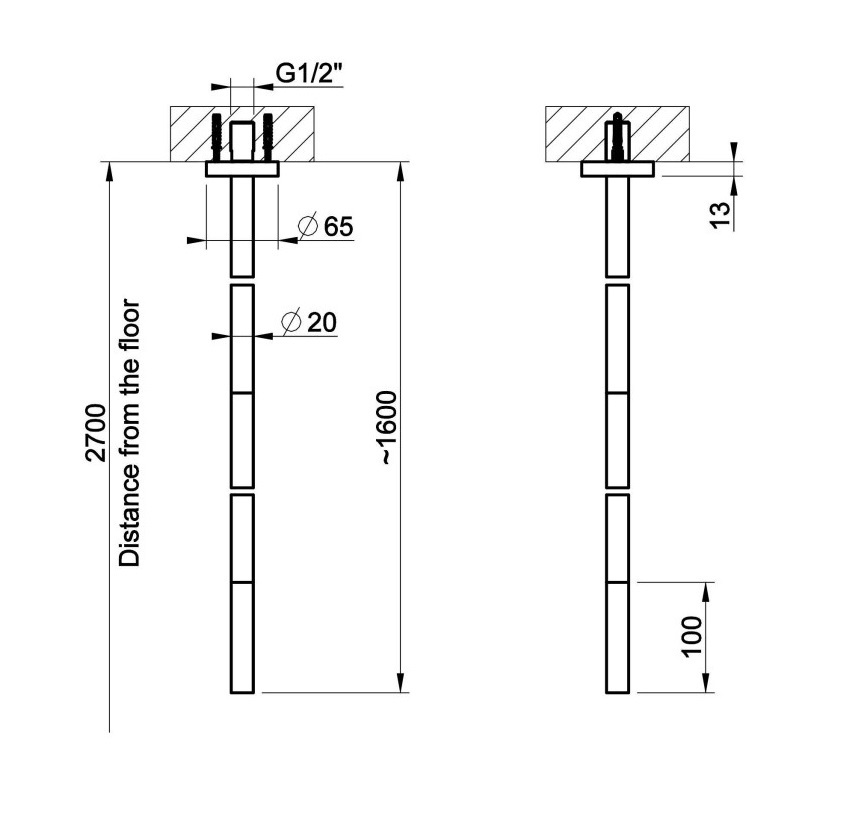 Излив потолочный 160 см, для удаленного управления.