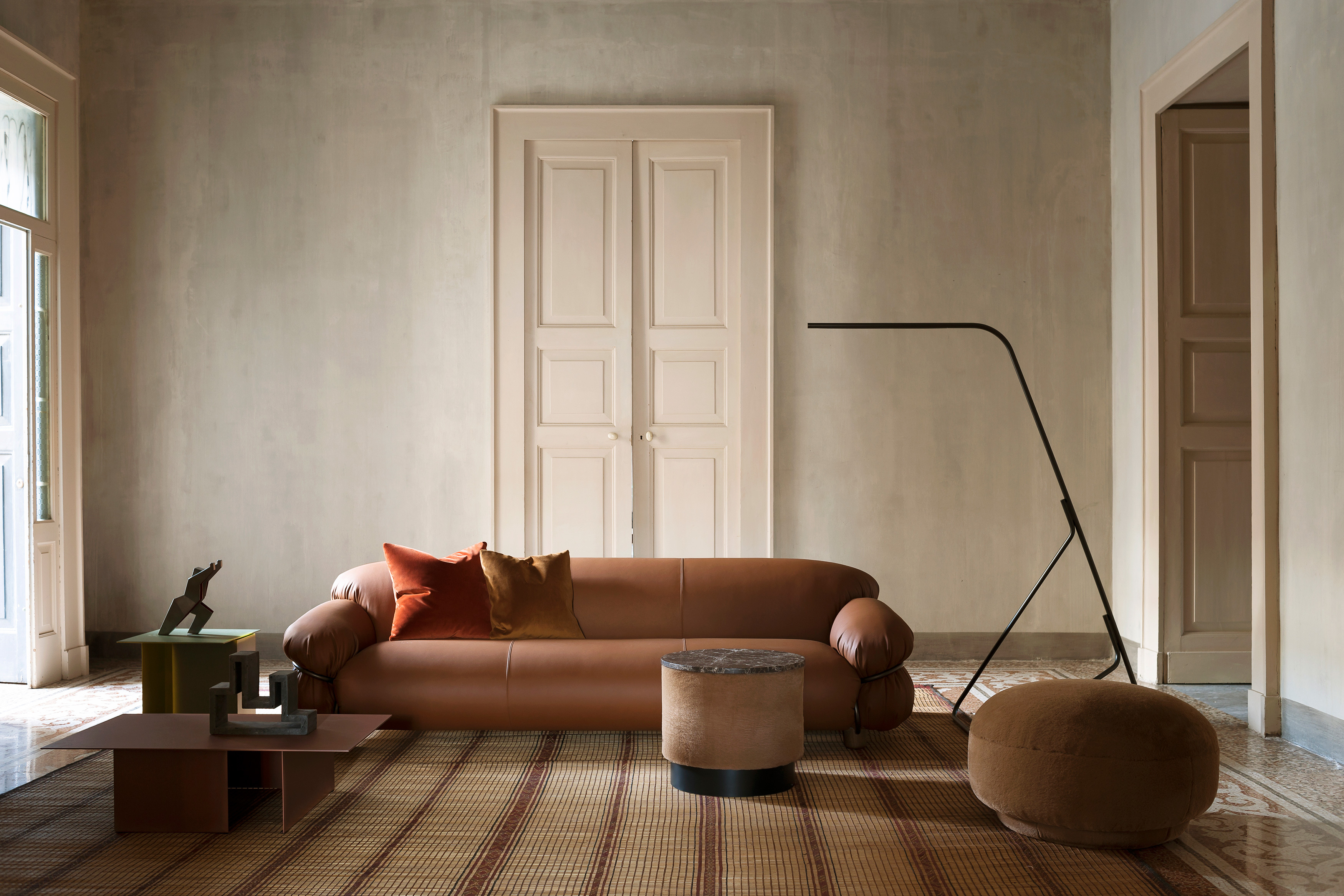 Коллекция бренда Tacchini включает в себя диваны и кресла, пуфы и шезлонги, стулья, обеденные столы и кофейные столики, а также различные аксессуары для дома (ширмы, ковры, настольные лампы, зеркала, часы и вазы).