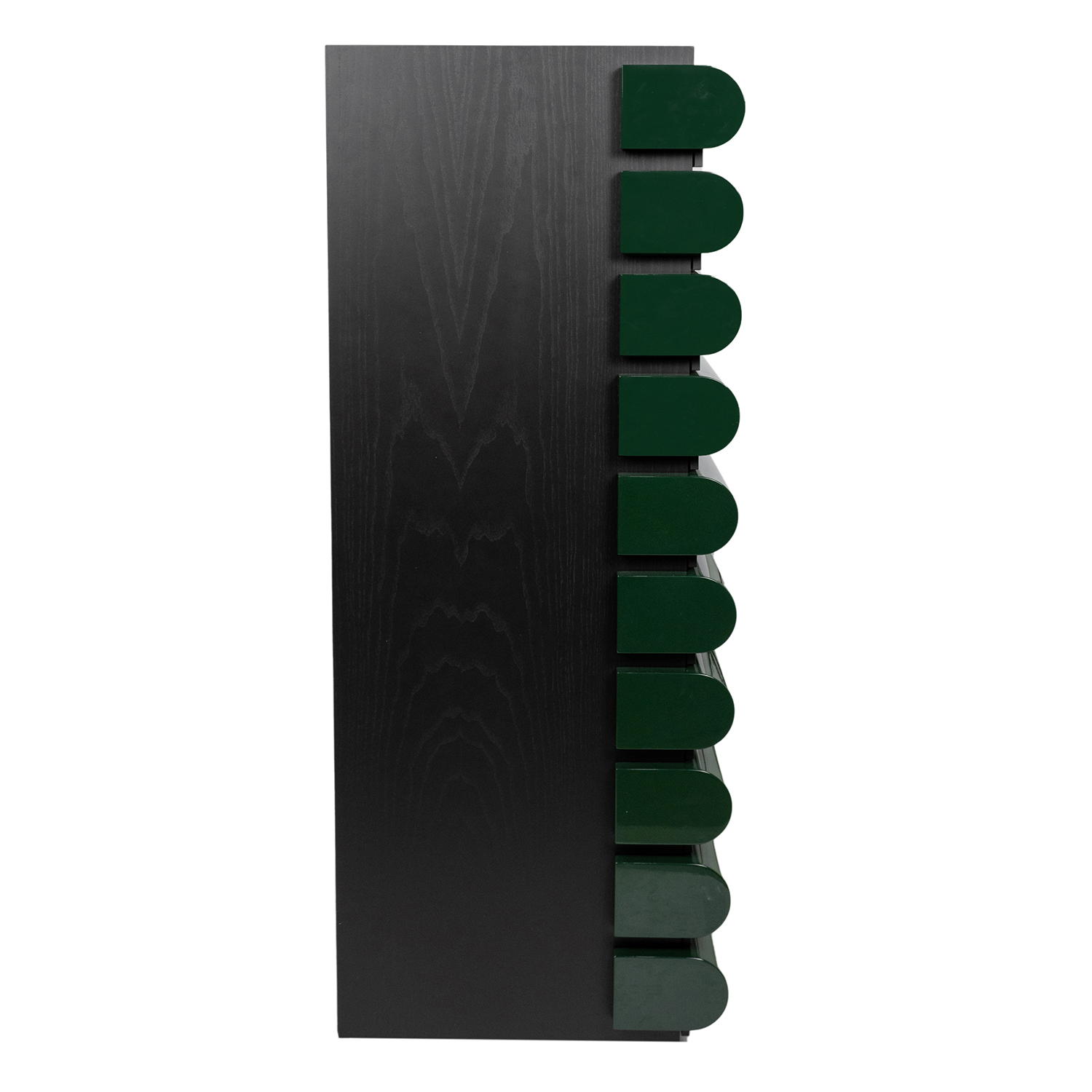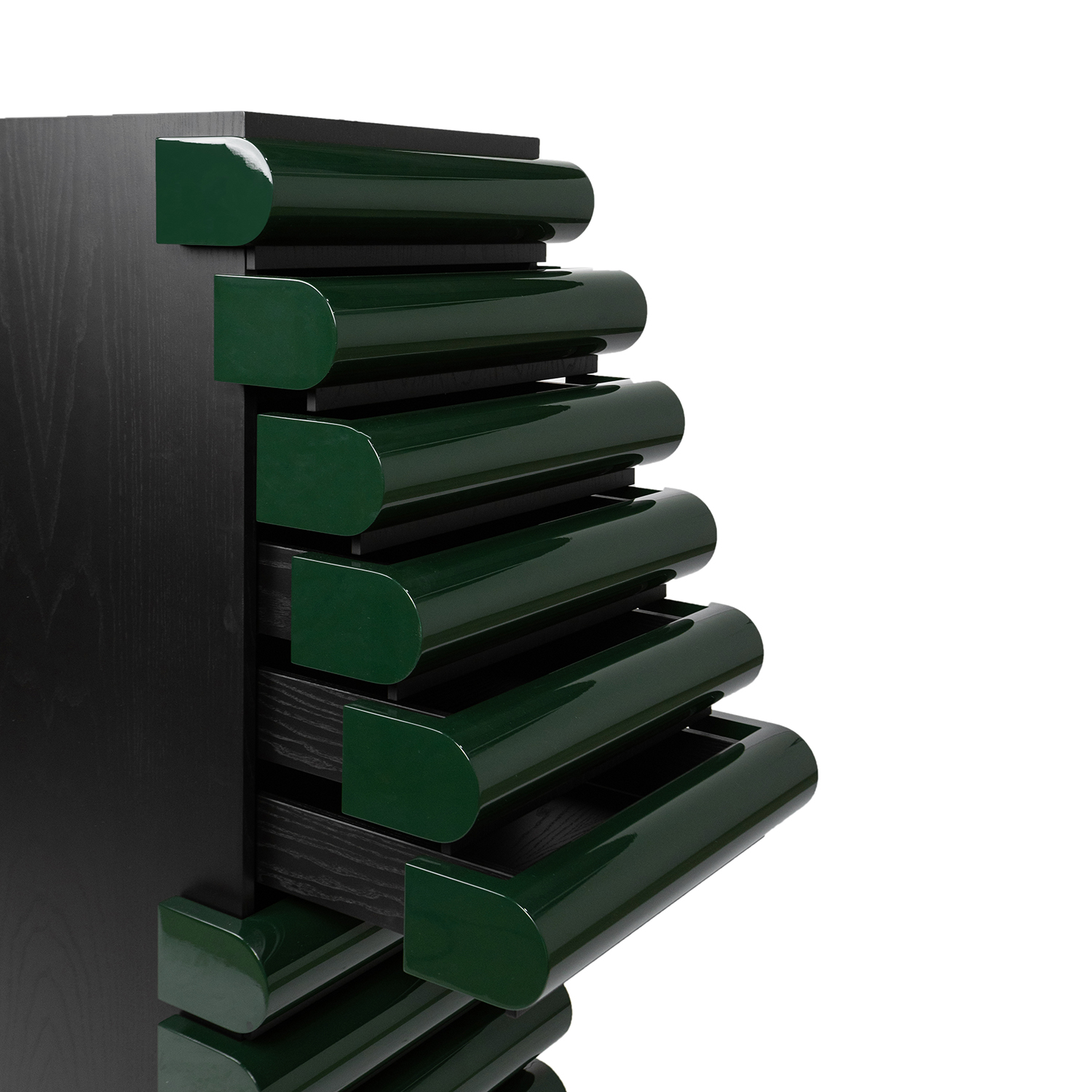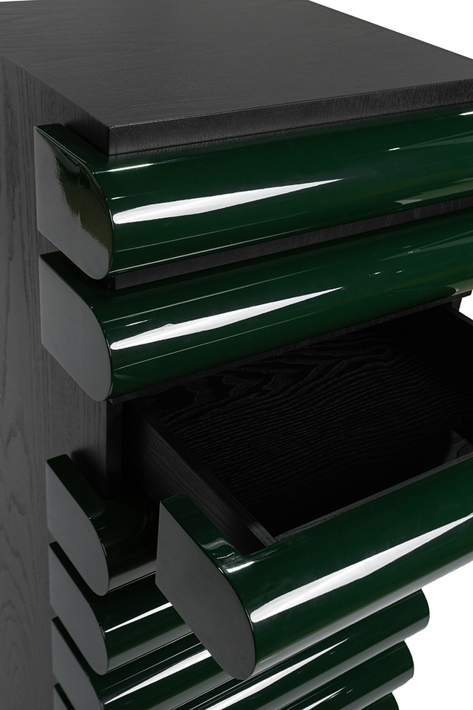 Комод Acerbis Storet F012928-0003 каркас-Black Ash, фасады ящиков-Glossy Lacquered Dark Green