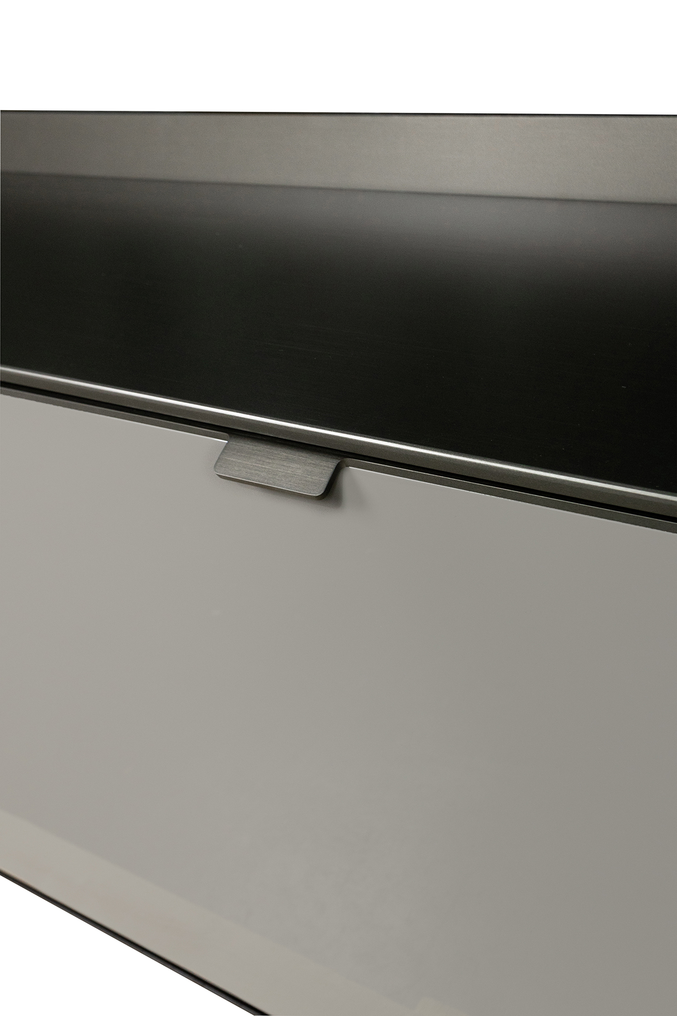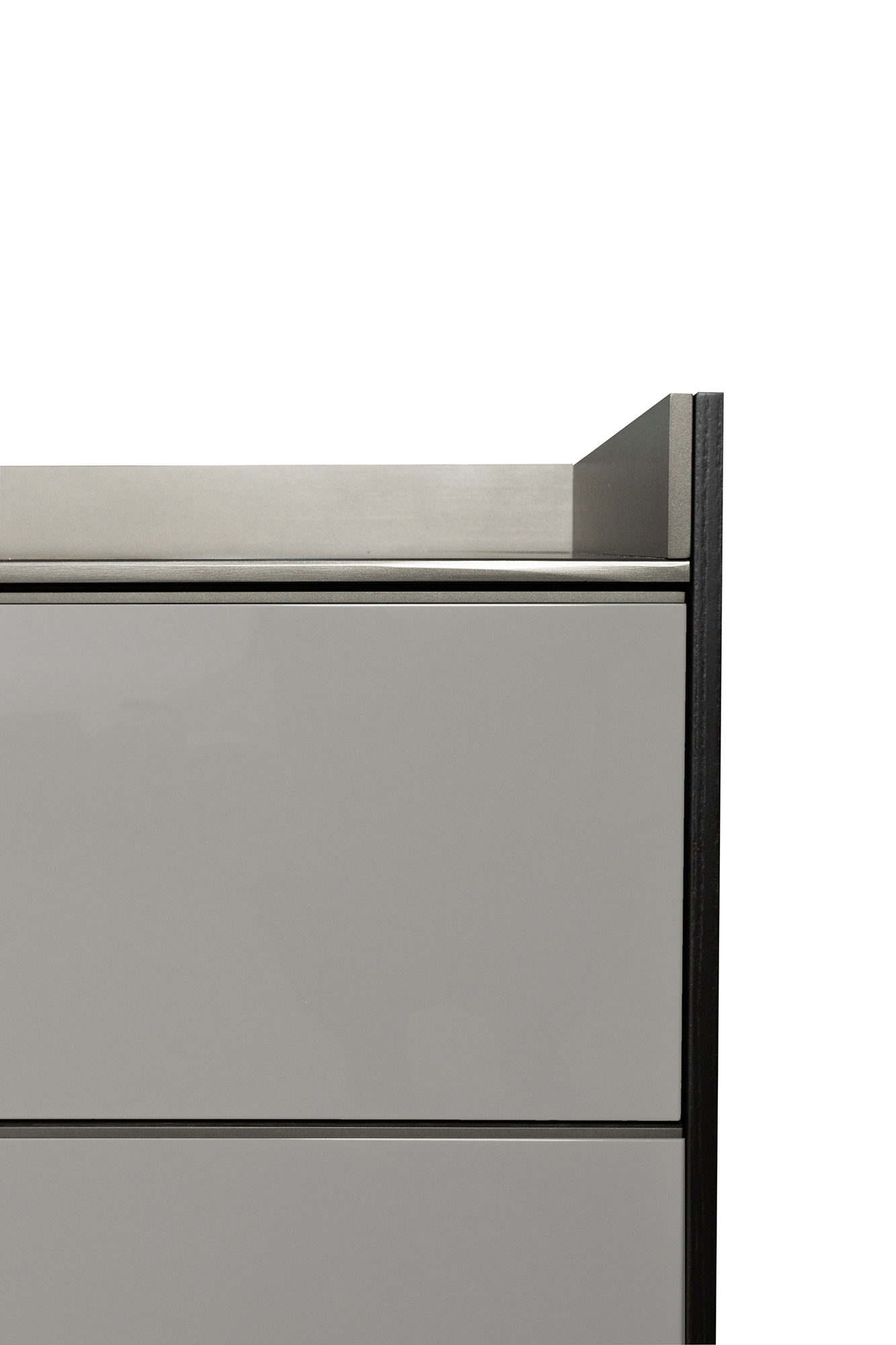 каркас-дерево Frassino Moka, фасад-лак Lucido Argilla, верх-металл Malto
