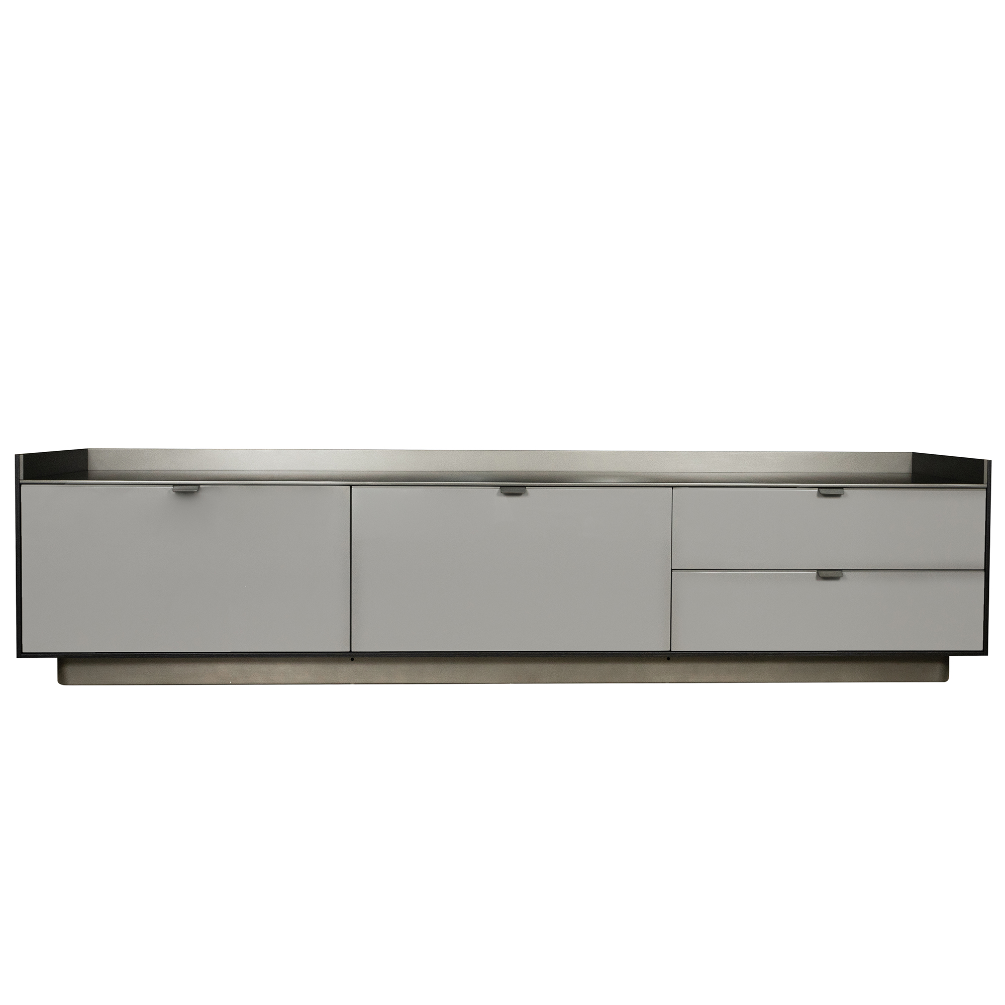 Комод Minotti Darren DAD277MA4C каркас-дерево Frassino Moka, фасад-лак Lucido Argilla, верх-металл Malto