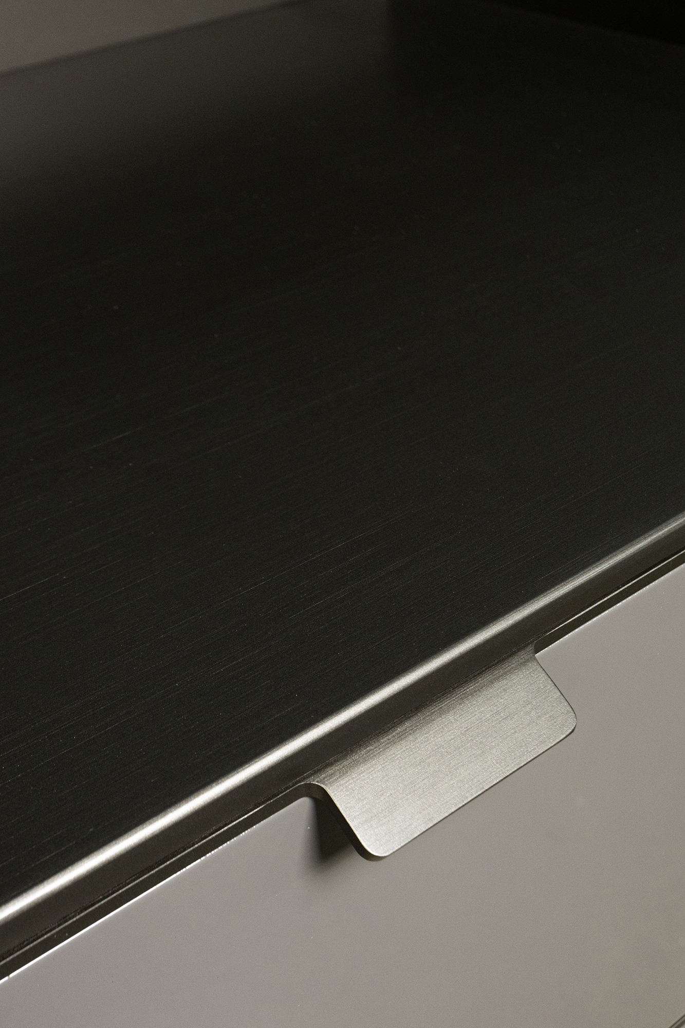 Корпус выполнен из массива древесины в отделке Frassino Moka, придающей поверхности глубокий тёмный оттенок и благородное сияние. Фасады покрыты лаком в оттенке Argilla, который подчеркивает элегантность форм. Ящики оснащены плавным механизмом закрывания, обеспечивая удобство в повседневном использовании.