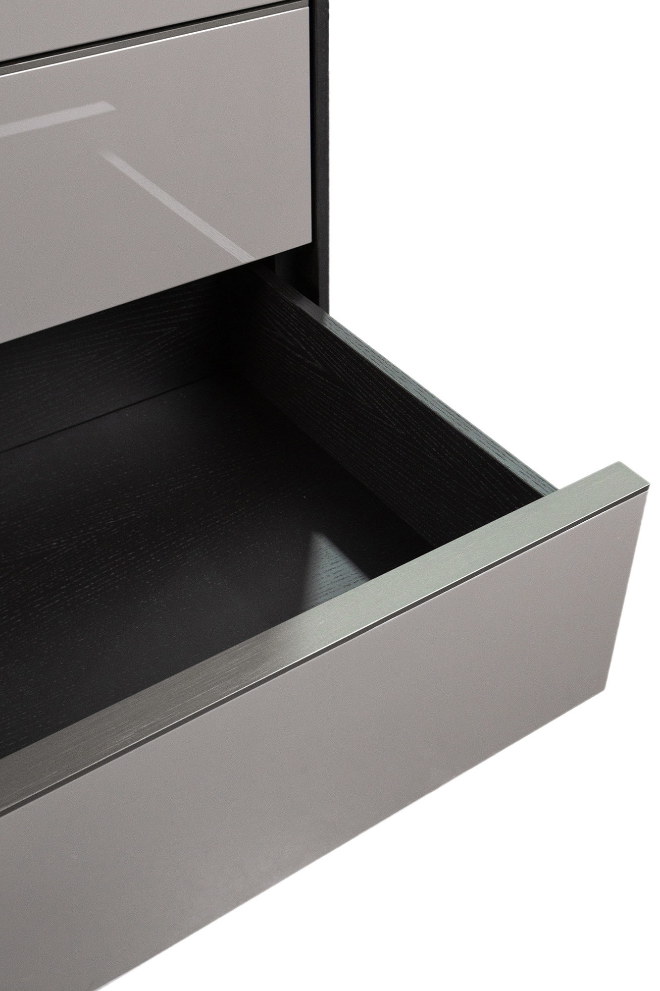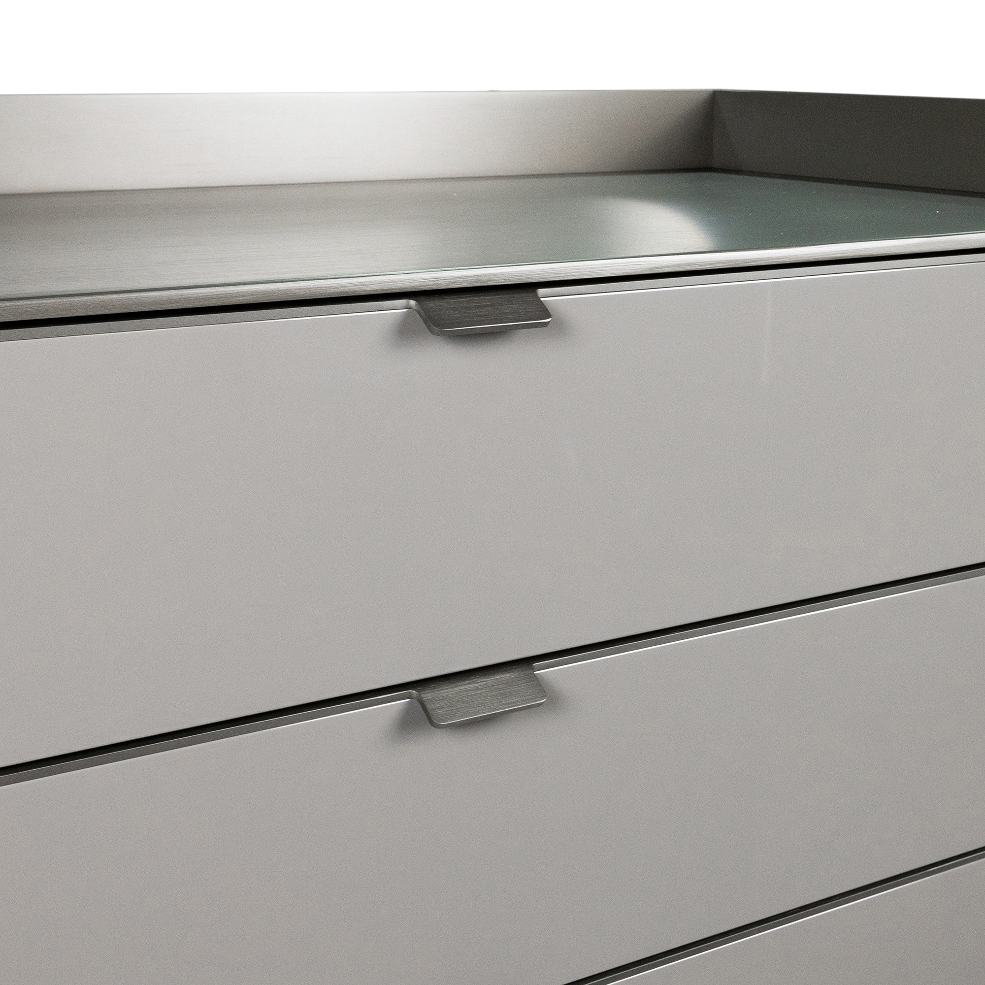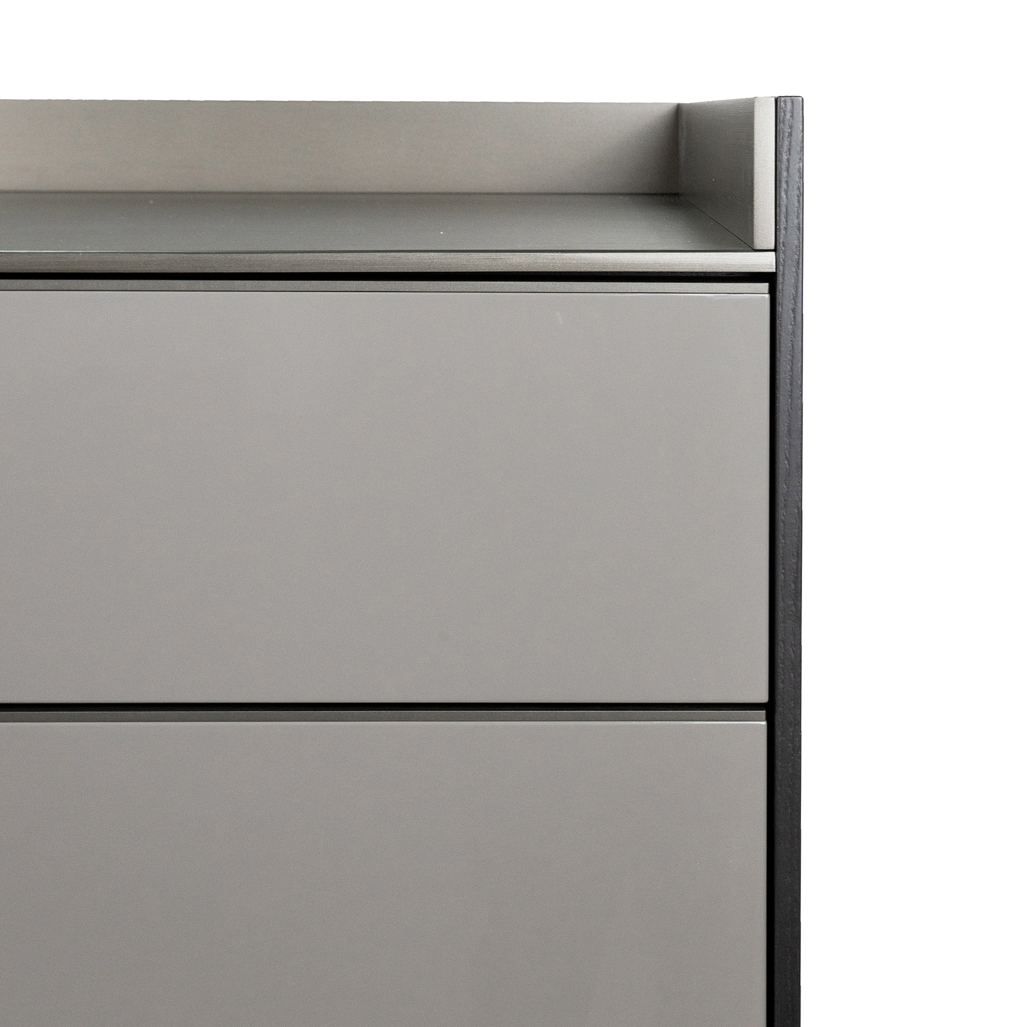 Комод Minotti Darren DAC120H120 каркас-дерево Frassino Moka, фасад-лак Lucido Argilla, верх-металл Malto