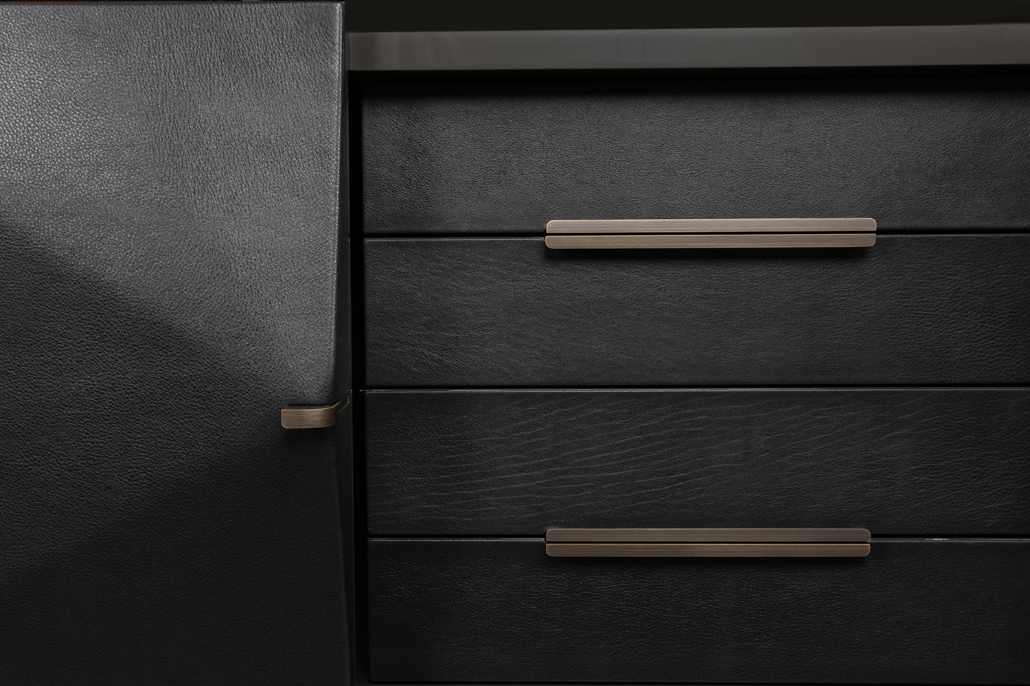 фасад - кожа Polish Deep (cat.A), корпус - Asphalt lacquered, основание - металл Hand Finished Burnished