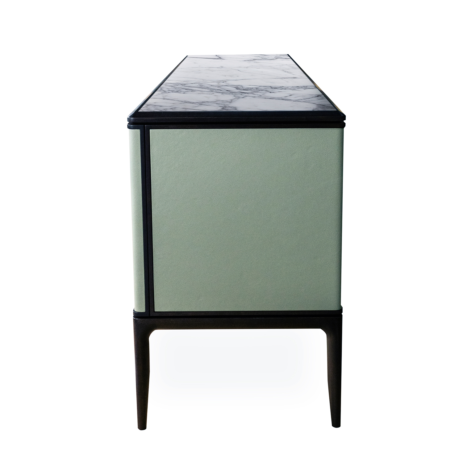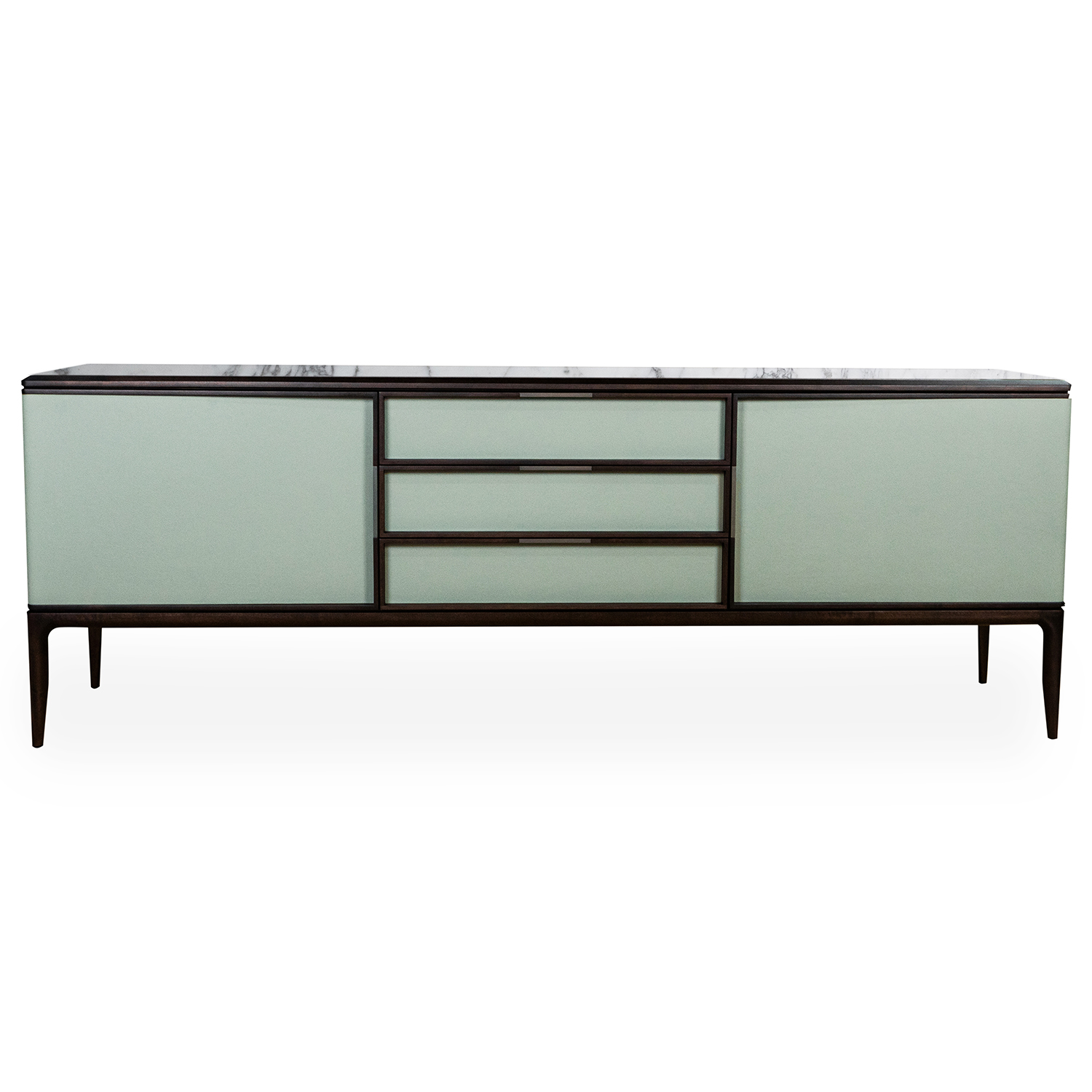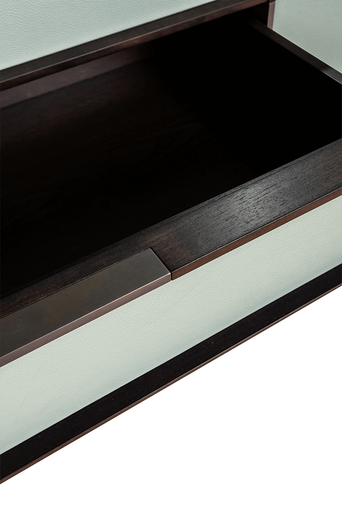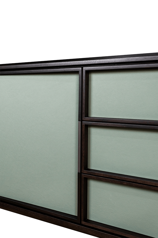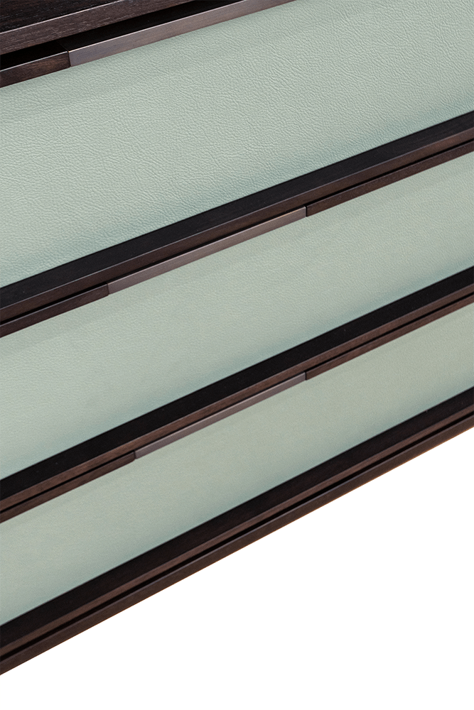 Комод Ceccotti OBLIQUE 55915+55844 дерево-AMERICAN WALNUT BROWN, кожа-SC180 CELADON, мрамор-CERVAIOLE