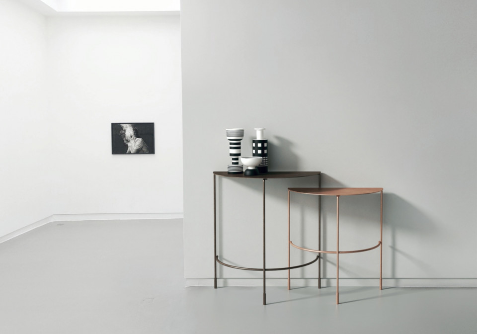 Консоль MIDJ HOODI H75 M_CU T2062CNM каркас:Black steel EN,столешница:Hide Testo di Moro COT4