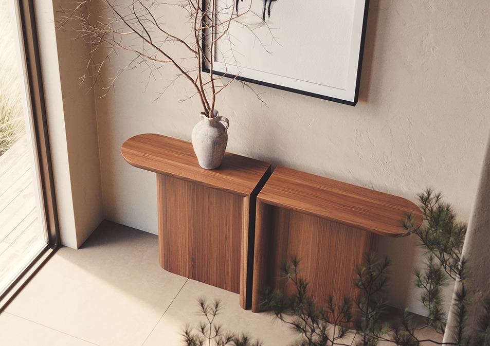 Re-Form органично встраивается в светлые, многослойные интерьеры в стиле минимализма. Она служит идеальной платформой для коллекционного декора, фоторамок или дизайнерского освещения. Решение купить такую консоль добавит в обстановку долю естественного, природного благородства.