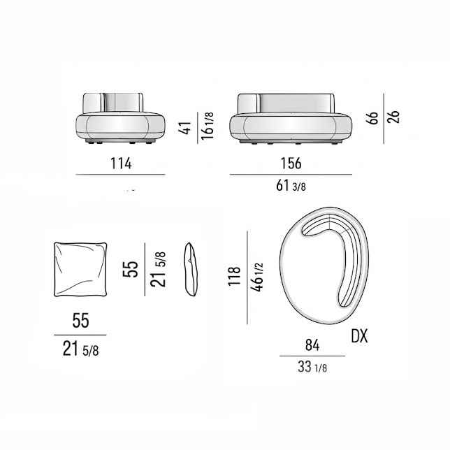 Правосторонняя версия Bézier DX словно повторяет плавный изгиб естественного ландшафта. Спинка мягко уходит вправо и открывает пространство для свободного обзора комнаты. Эта модель отрицает строгую симметрию и привносит в спокойную обстановку ощущение живой динамики.
