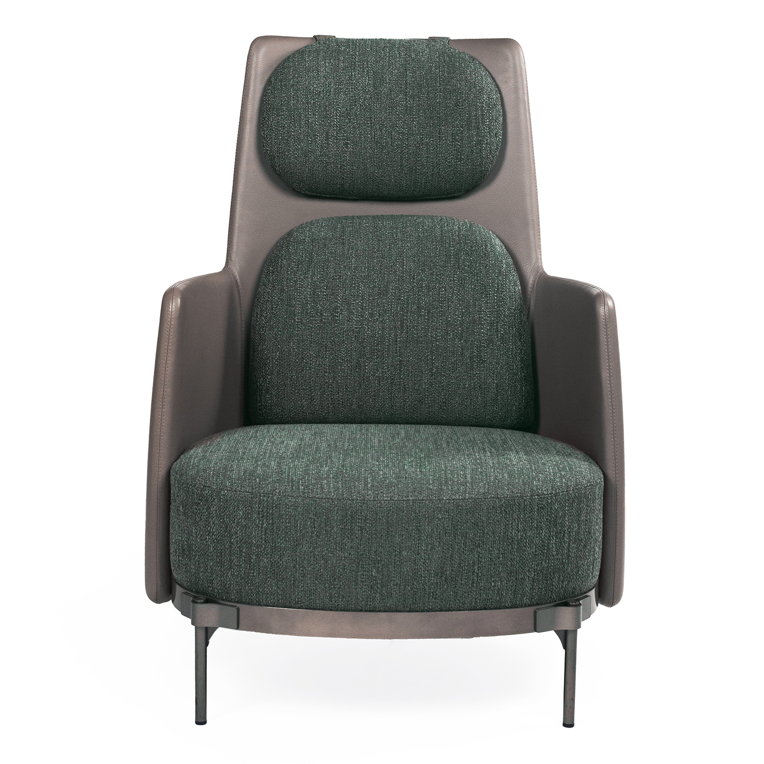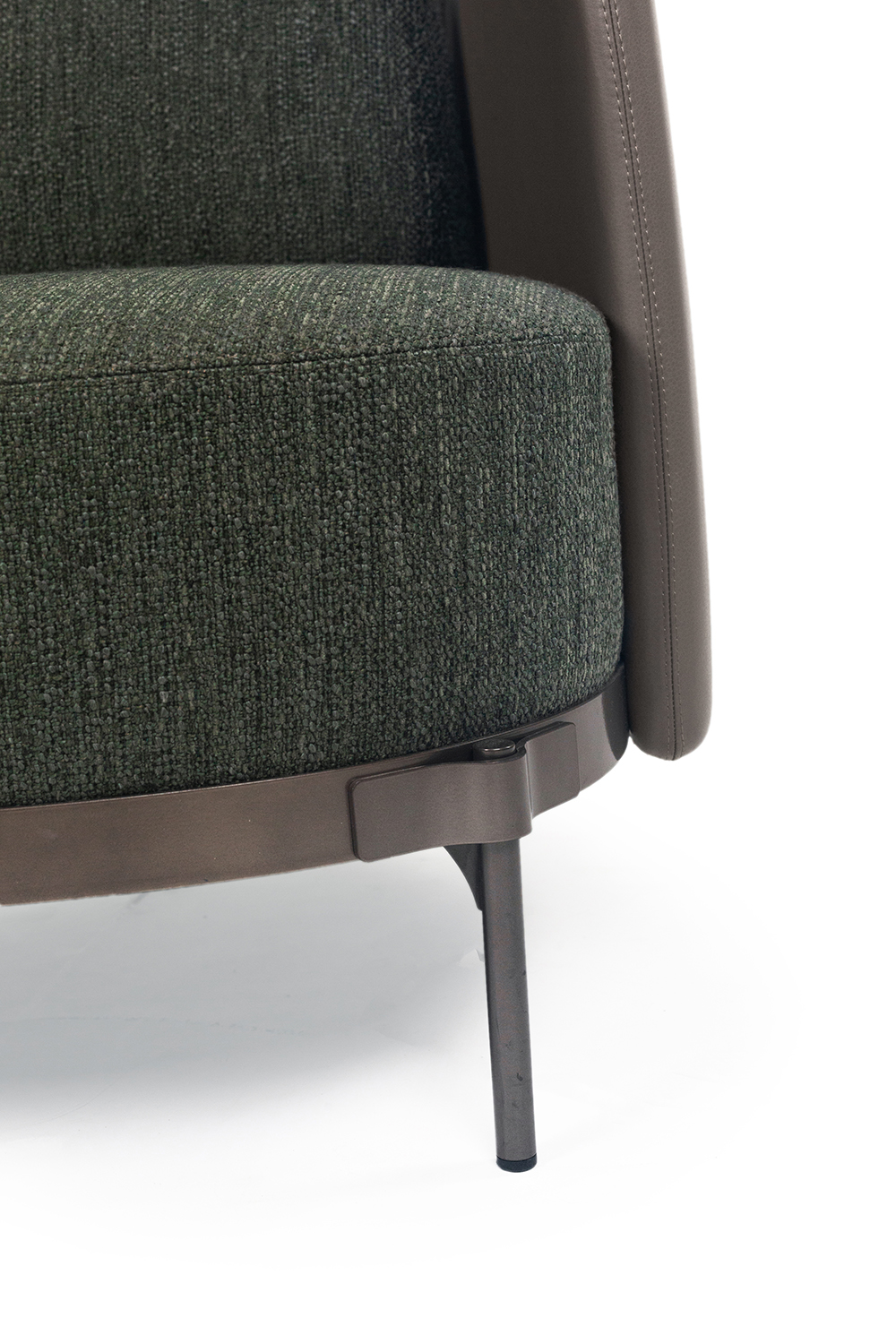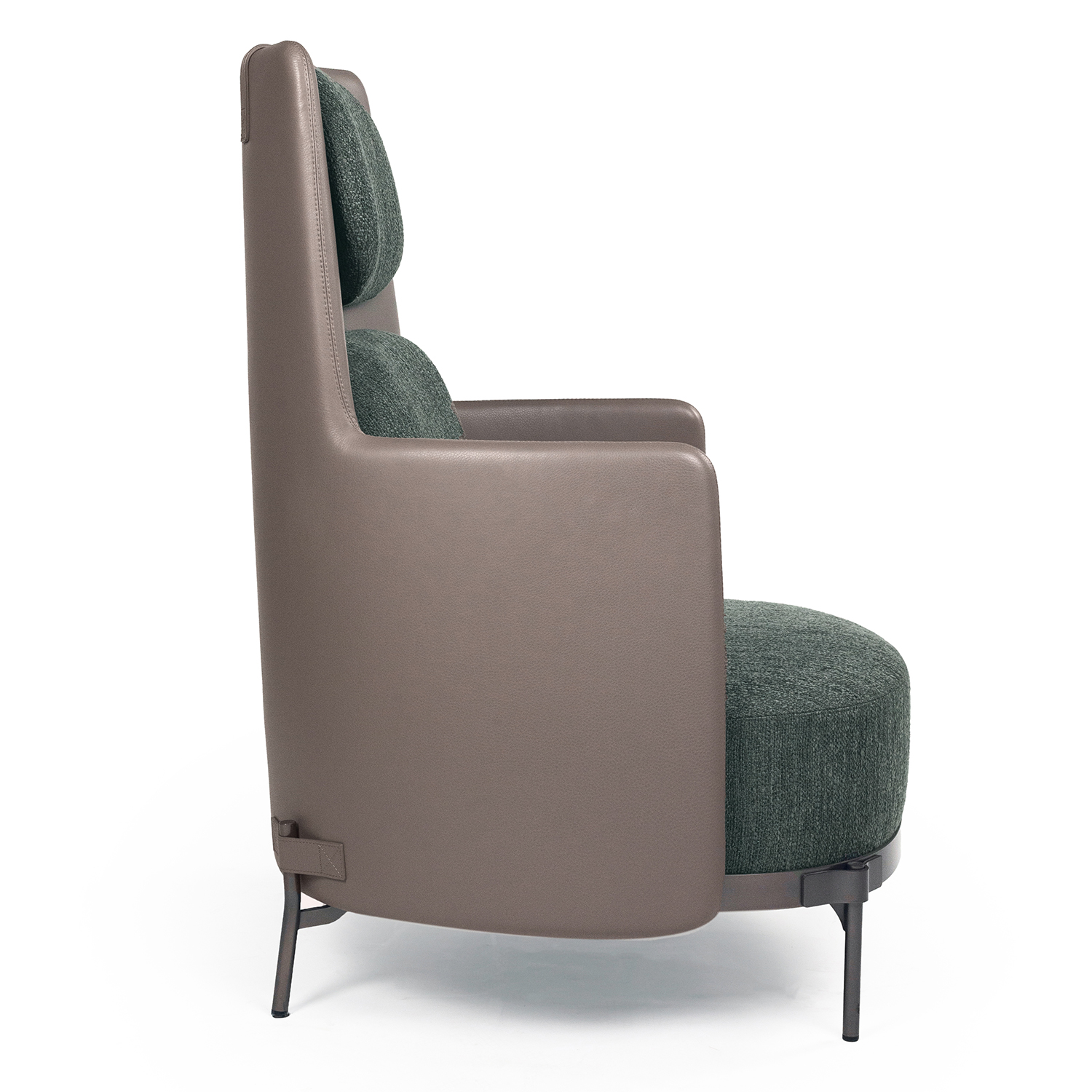Кресло Minotti TAPE TAPB77PN спинка в коже Aspen 12 Agrilla pelle natura, подушки ткань-Fisher 07 Salvia, cat G, ножки bronzo