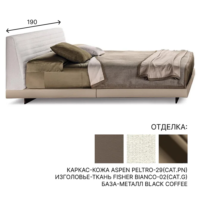 каркас-кожа ASPEN 14 KAKI (CAT. NATURE LEATHER), изголовье-ткань GRACE 04 FUMO (CAT. H)