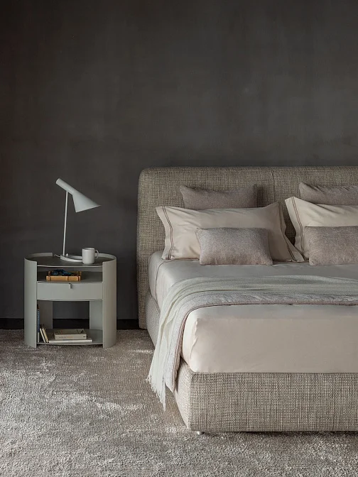 Кровать MyPlace представляет собой гармонию архитектурной строгости и мягкой пластики. Её монолитный силуэт с высоким изголовьем создаёт ощущение уюта и защищённости, а чистая геометрия форм подчёркивает современный итальянский стиль.