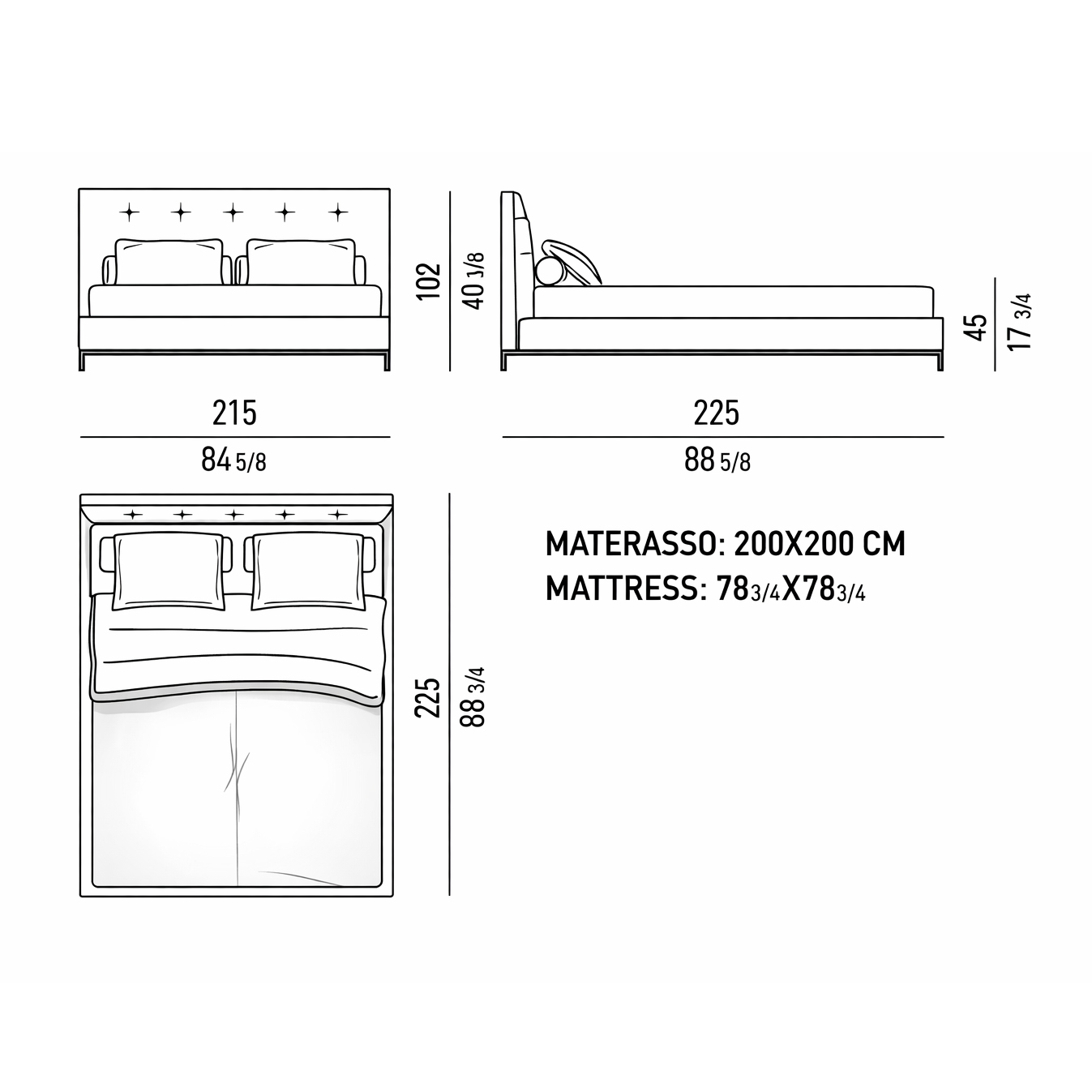 Ткань Feel в оттенке Bianco подчёркивает чистоту объёмов и усиливает впечатление воздушности. Тонкие ножки делают основание почти невесомым, позволяя кровати «висеть» в пространстве без тяжести. Отсутствие декоративных излишеств позволяет сконцентрироваться на материале и геометрии.
