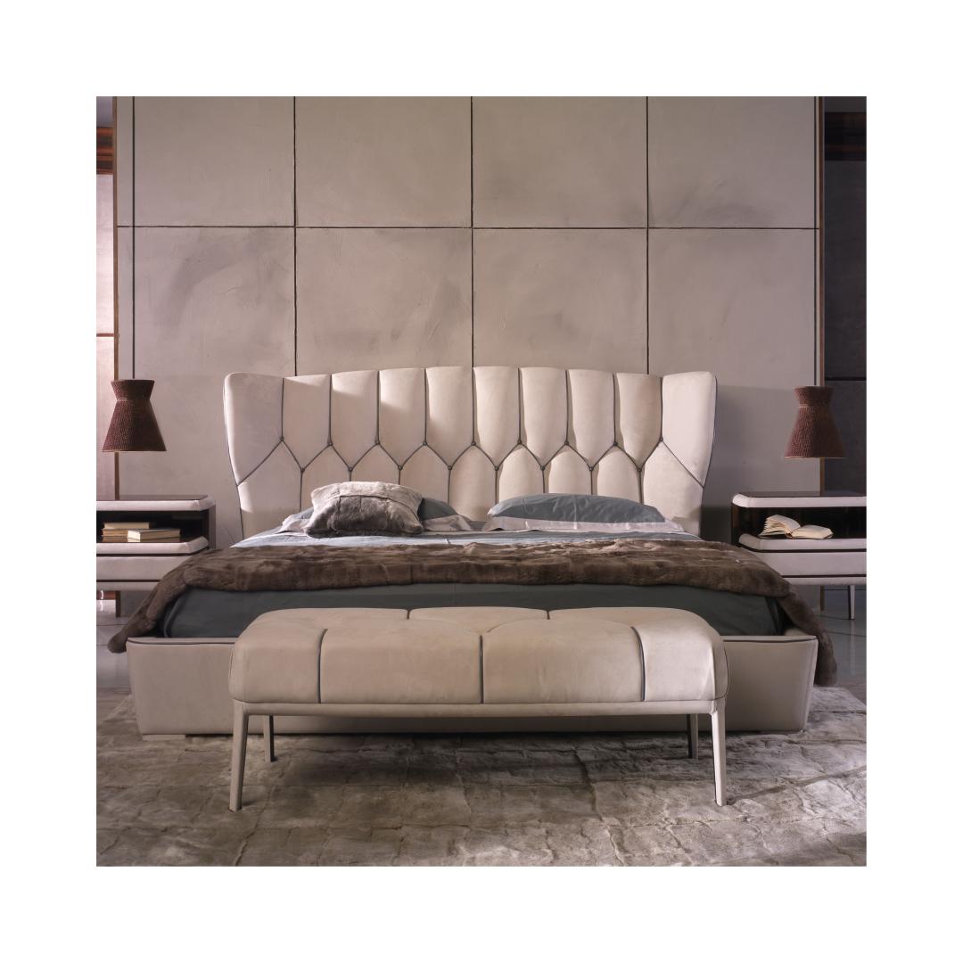 Кровать Ulivi MOLLIE MOLLIESKS + RETE200 снаружи изголовье и кант кожа tuscany creta, внутри изголовье и основание кожа kashmir madras lea