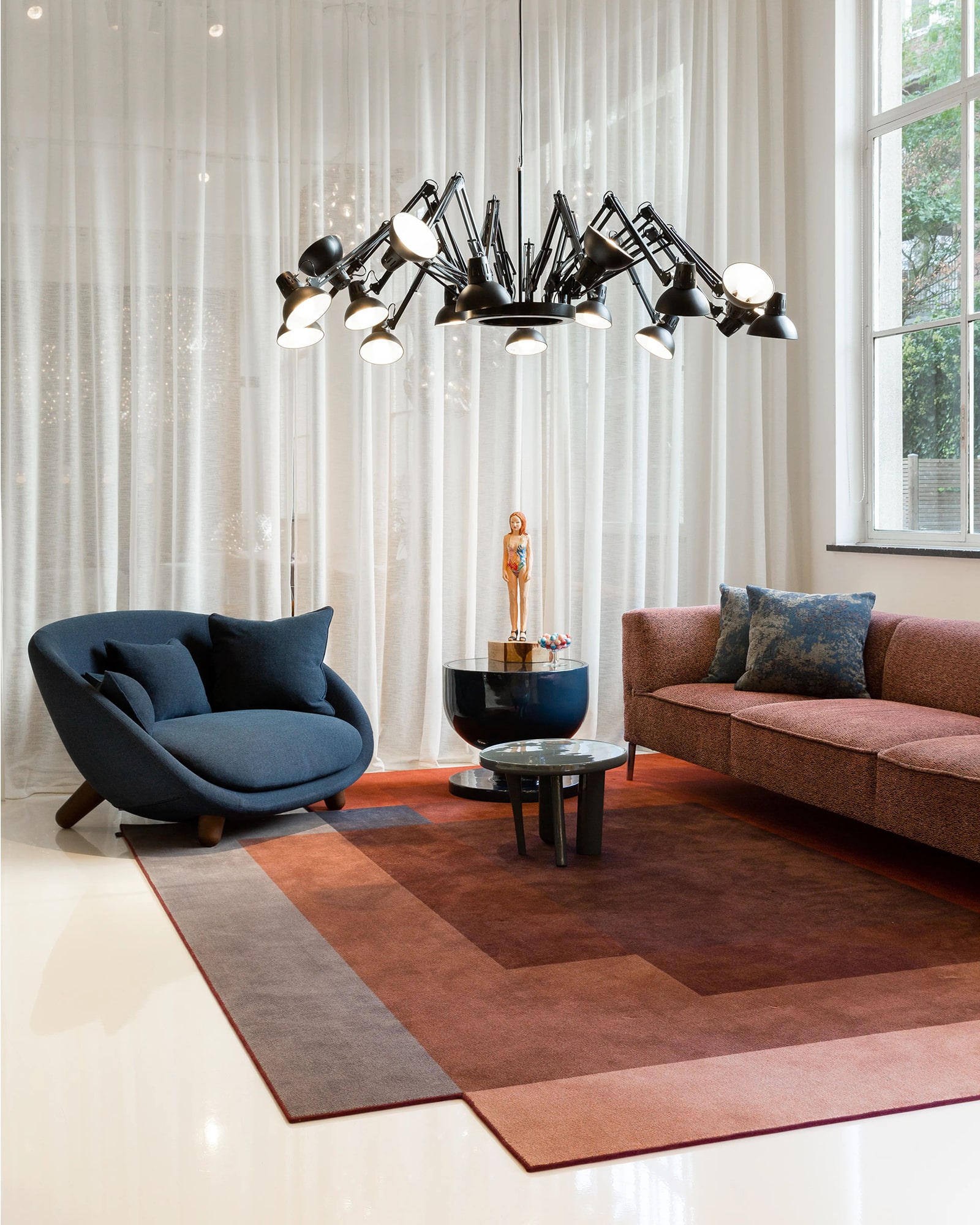 Эта модель — одновременно осветительный прибор и скульптурная композиция. Графичная форма и гибкость конструкции позволяют создавать множество световых сценариев — от мягкого рассеянного до акцентного освещения.
