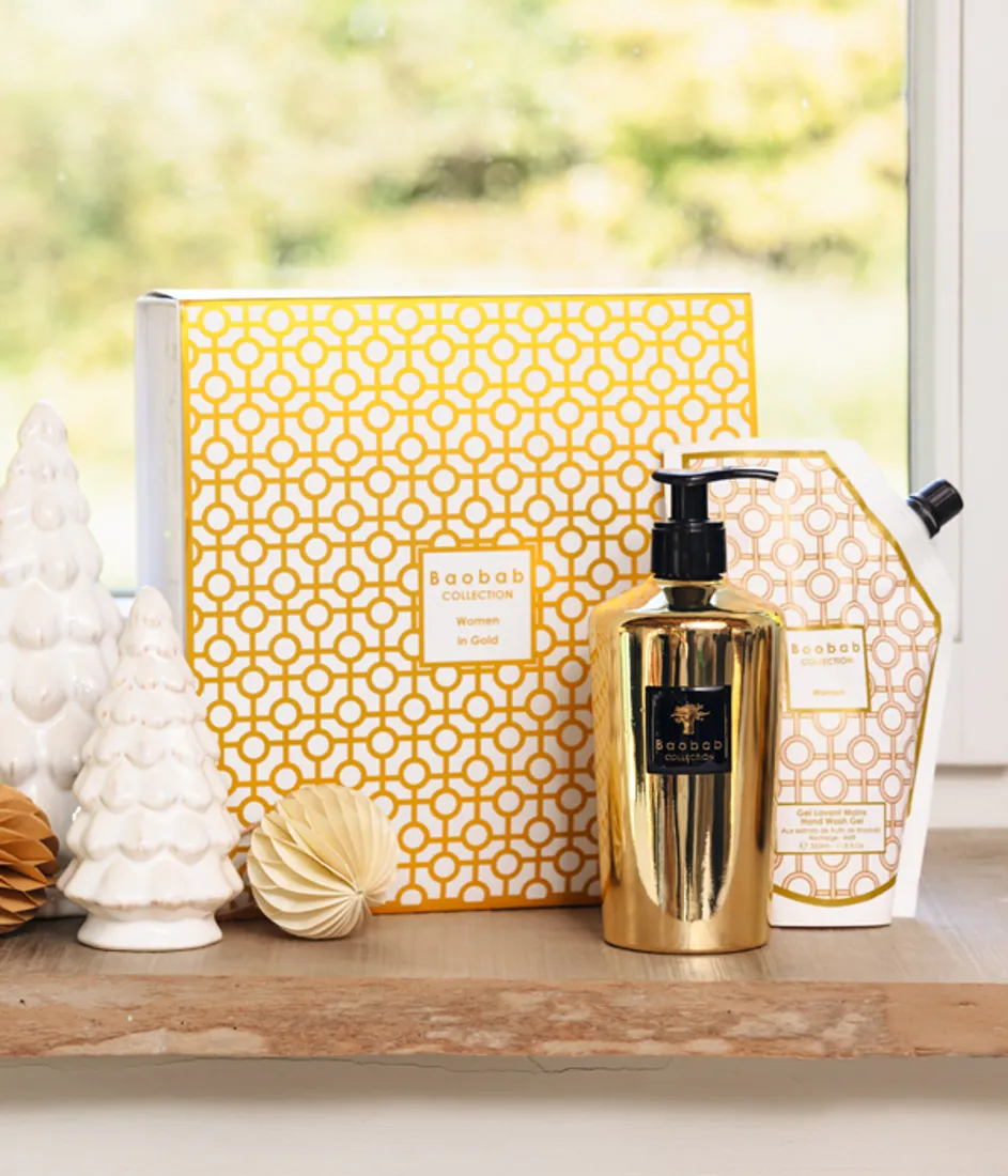 Набор WOMEN IN GOLD создан для тех, кто ценит утончённые ритуалы ухода и безупречную эстетику. Его аромат превращает каждое прикосновение в мгновение чувственной роскоши.
