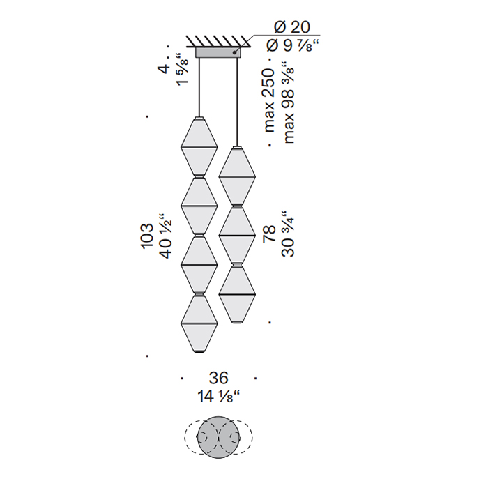 Потолочный светильник De Padova Helium Mini HM#S34VS+DIMCSB1 GLASS SAND EFFECT