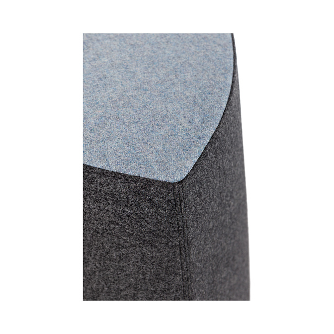 Пуф из коллекции Kensho одинаково хорош в гостиной, студии или прихожей. Отделан плотной шерстяной тканью – по бокам черного цвета, и приглушенного голубого сверху.
