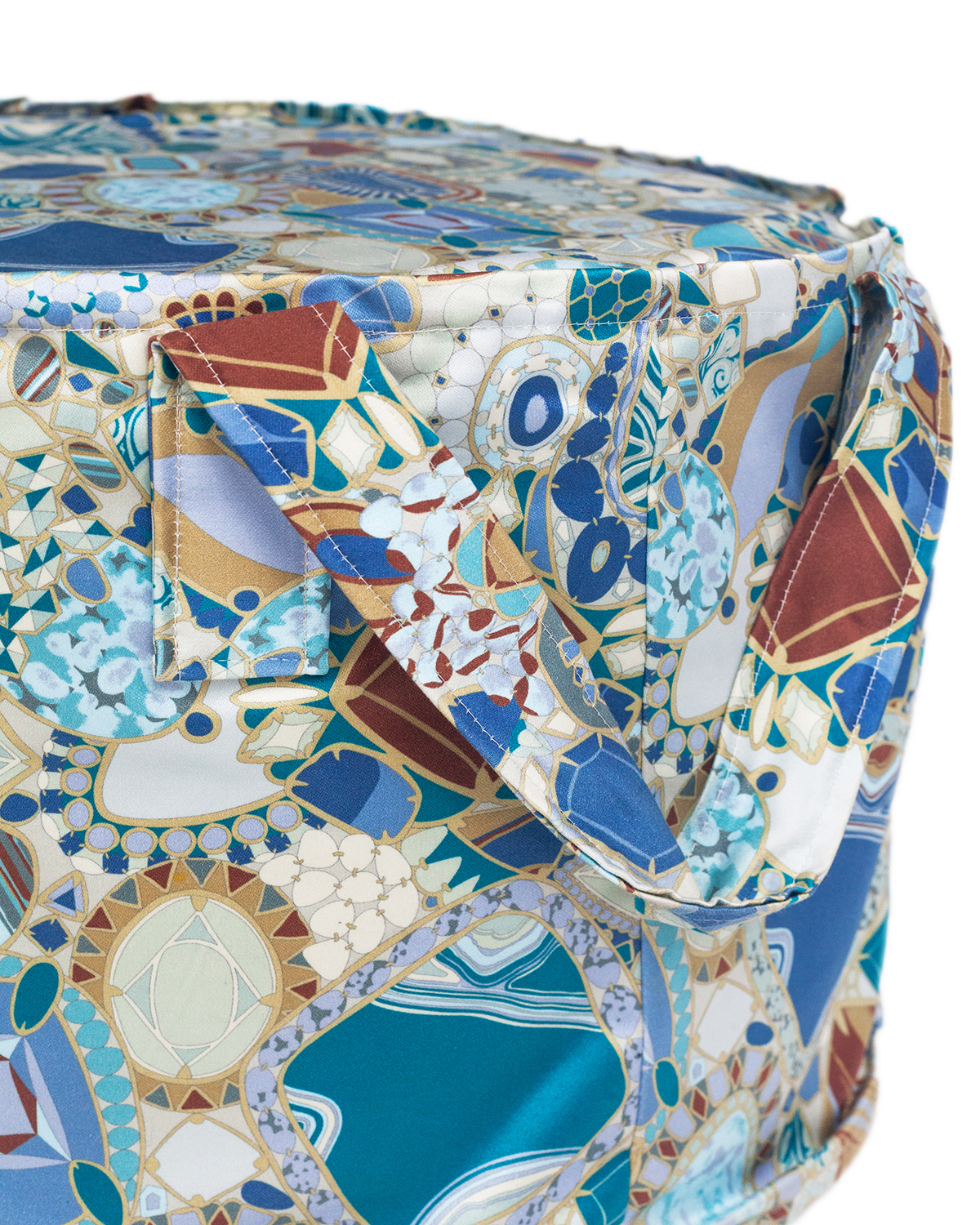 Мягкий пуф, обитый тканью из коллекции Perpignan, станет ярким акцентом любого интерьера. Розита Миссони черпала вдохновение в драгоценных камнях насыщенных оттенков синего, коричневого и голубого. Две удобные ручки позволяют легко перемещать пуф.