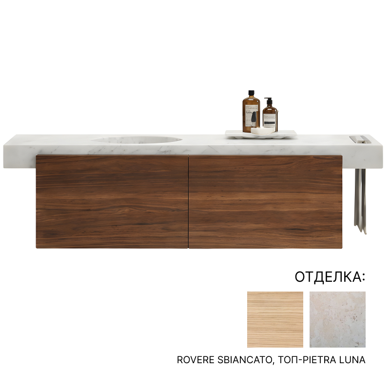 раковина-TRAVERTINO TITANIUM, база-EUCALIPTO FRISE