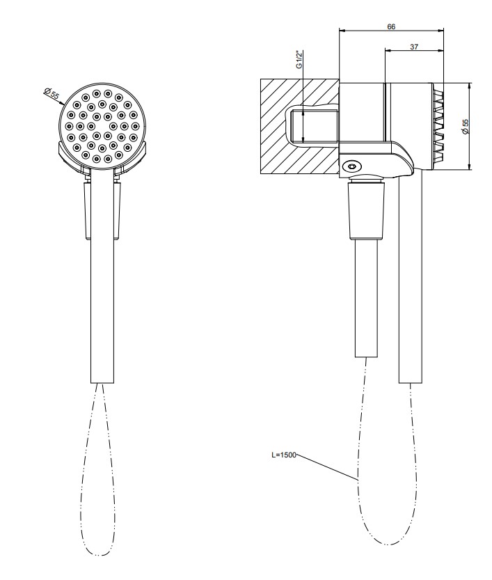 Ручной душ с магнитным выпуском-держателем и шлангом Darkflex 1.5 м.