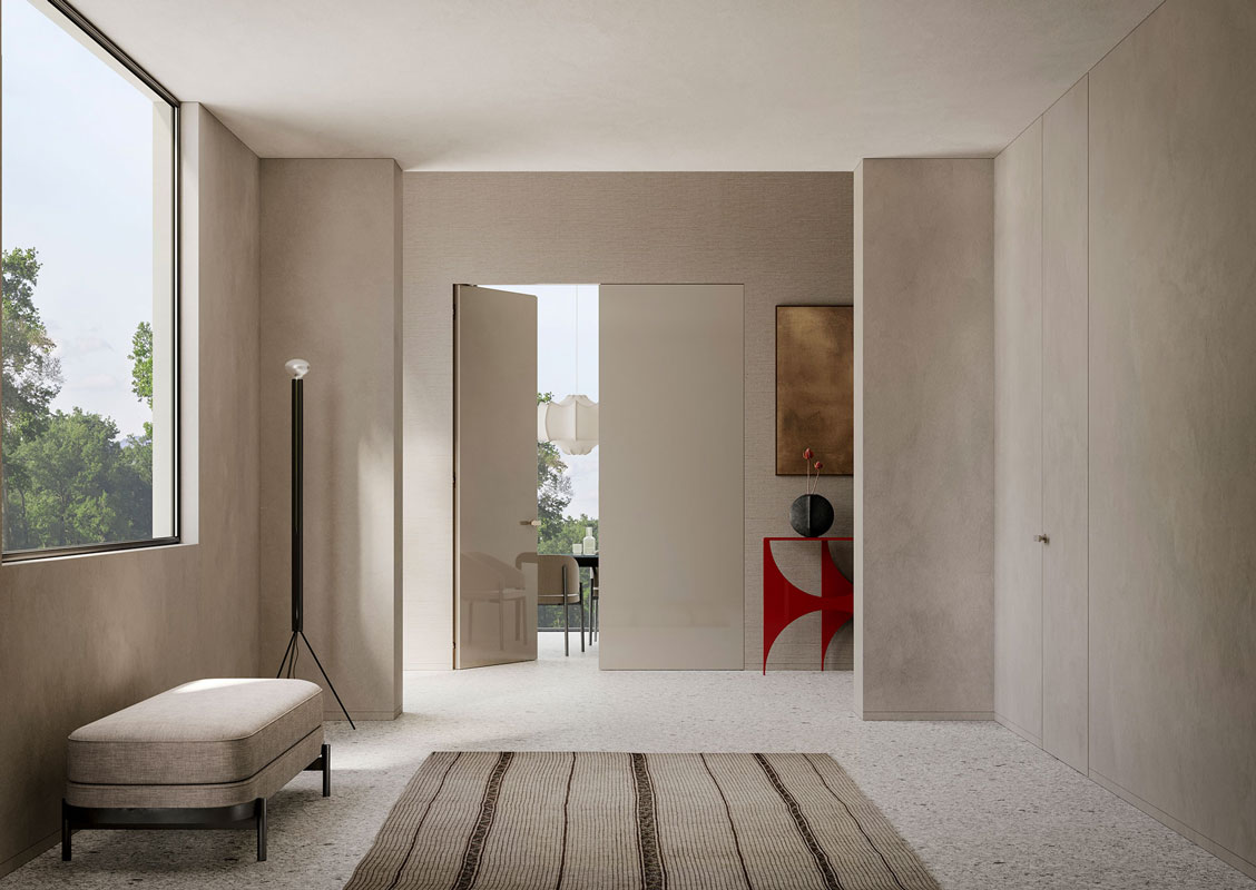 Скрытая распашная межкомнатная дверь.