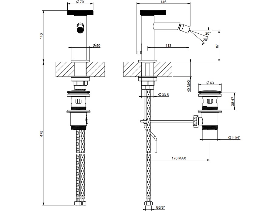 Смеситель для биде Gessi ANELLO 63307#710 латунь PVD