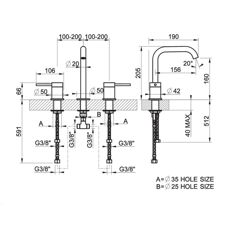 Смеситель для раковины на 3 отв. без донного клапана.