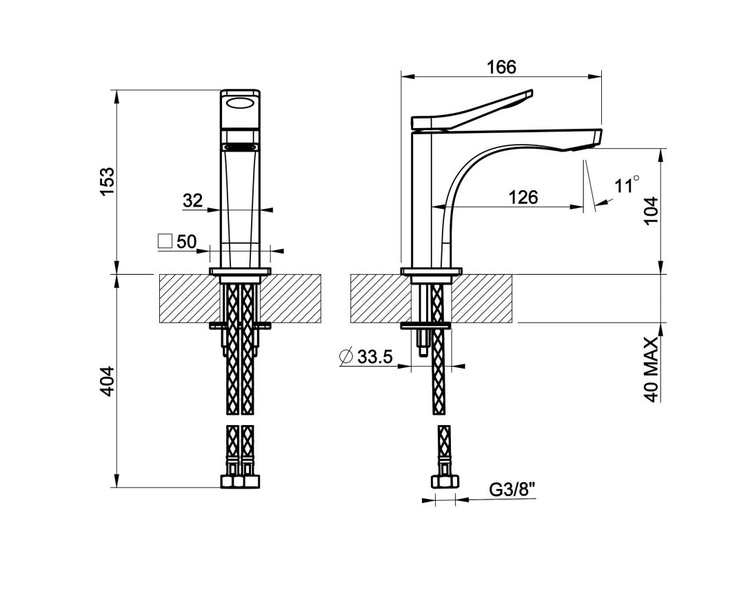 Смеситель для раковины без донного клапана.