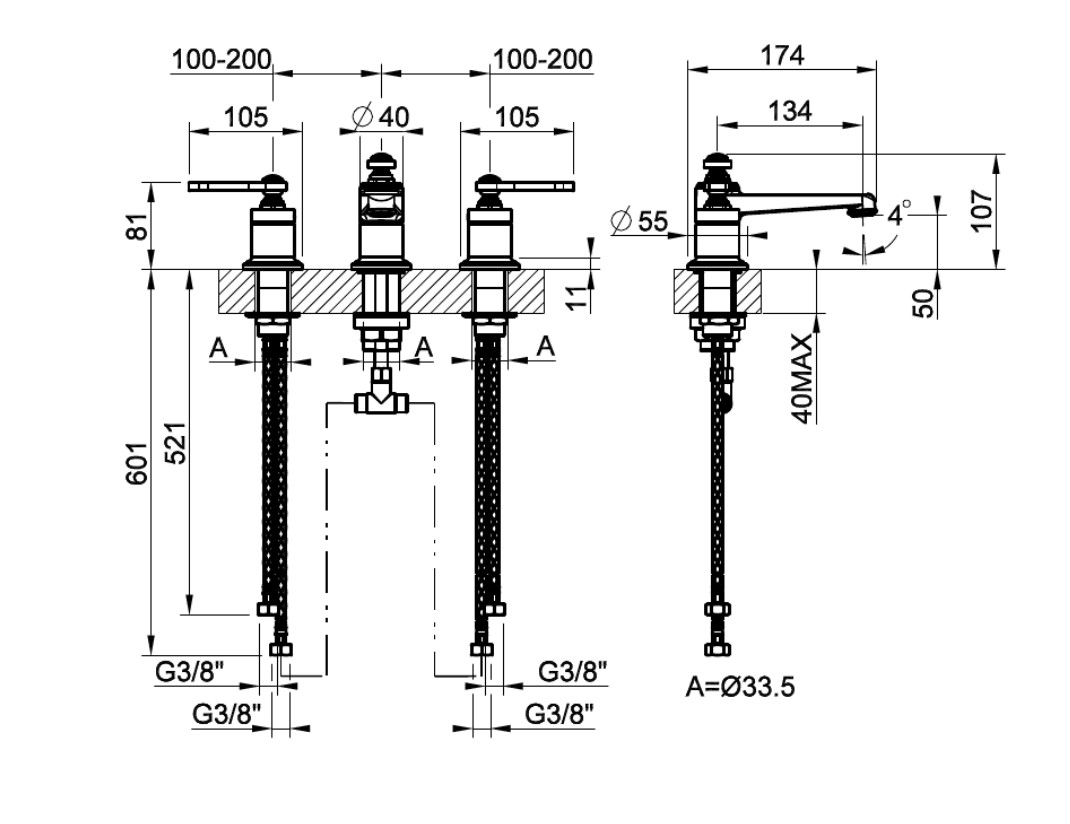 Смеситель для раковины на 3 отверстия.