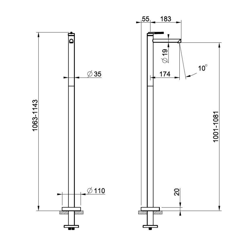 Смеситель для раковины напольный, без внутренней части.