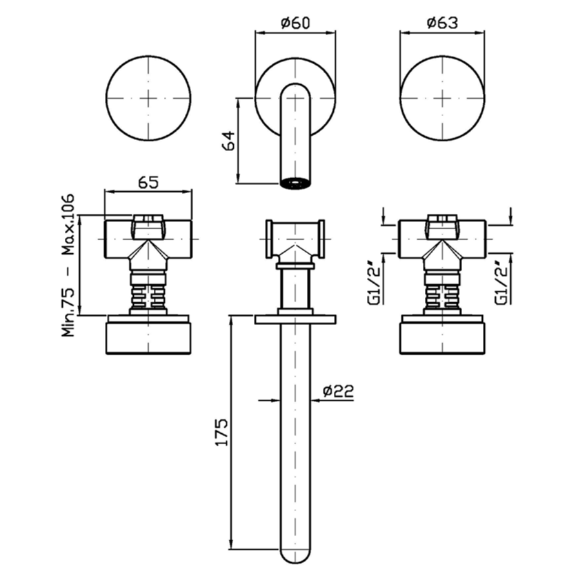 Смеситель для раковины Zucchetti Isy22 доступен в размерах: