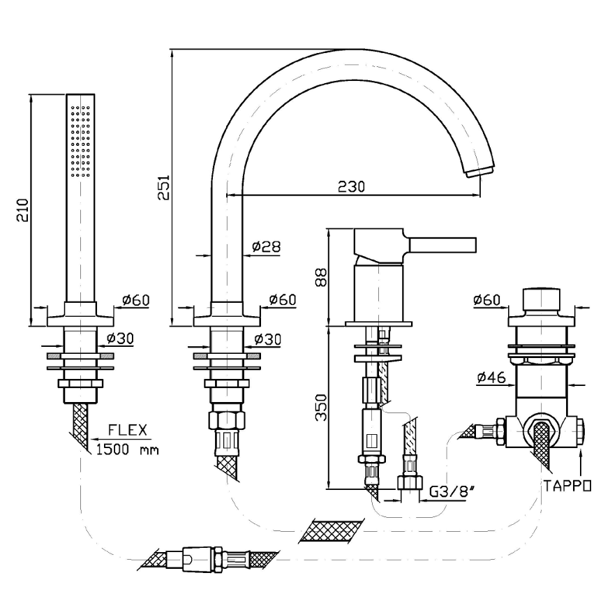 Смеситель для ванны Zucchetti ZP6502.C3