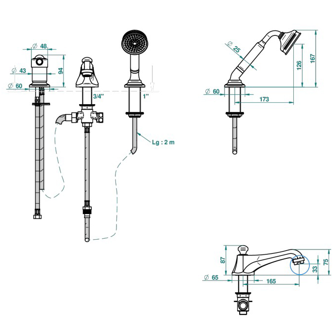 Смеситель на ванну THG Charleston