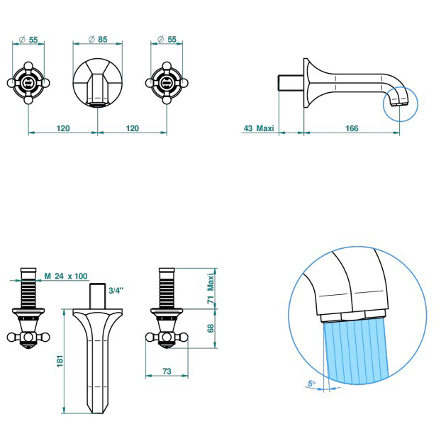 Смеситель встраиваемый THG Charleston