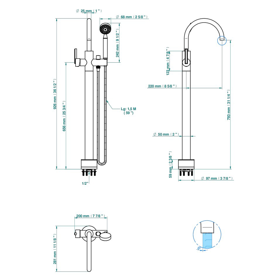 Смеситель напольный THG Les Ondes