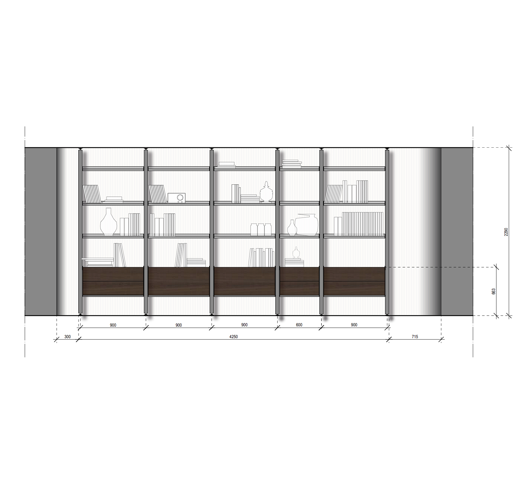SAINTPAUL особенно гармоничен в просторных гостиных, современных библиотеках, кабинетах и open space-зонах. Стеллаж легко сочетается с мягкими диванами, нейтральным текстилем и мебелью в тёмных породах дерева, формируя интерьер с подчёркнутой элегантностью и спокойным, зрелым характером.