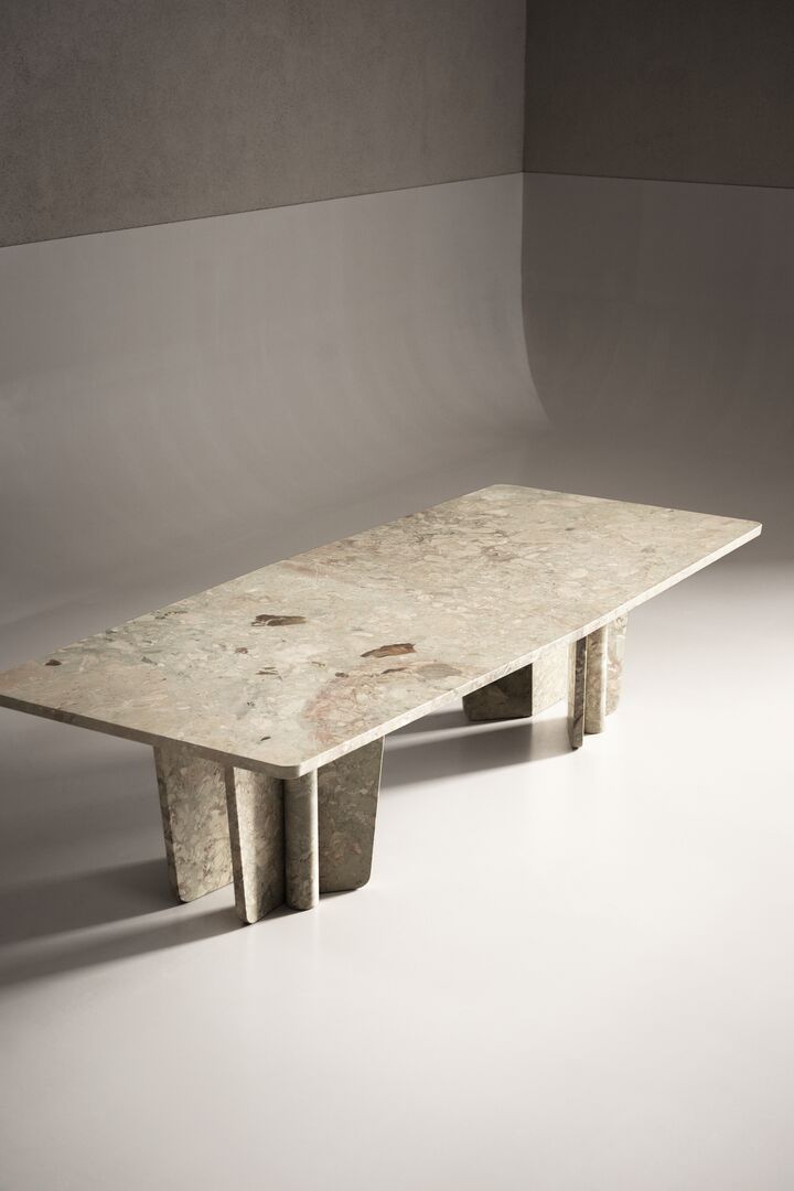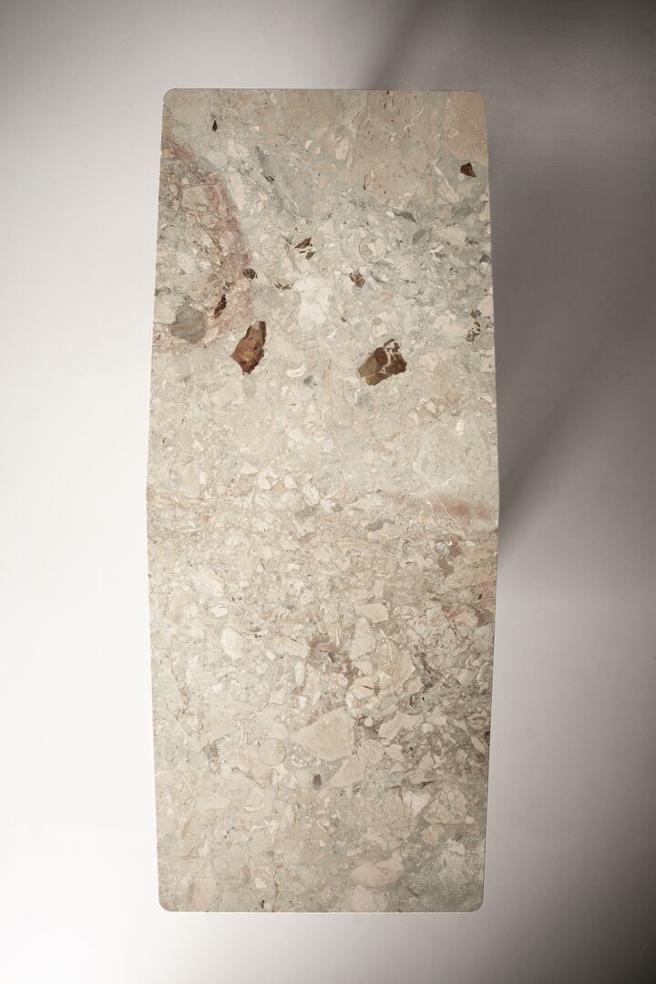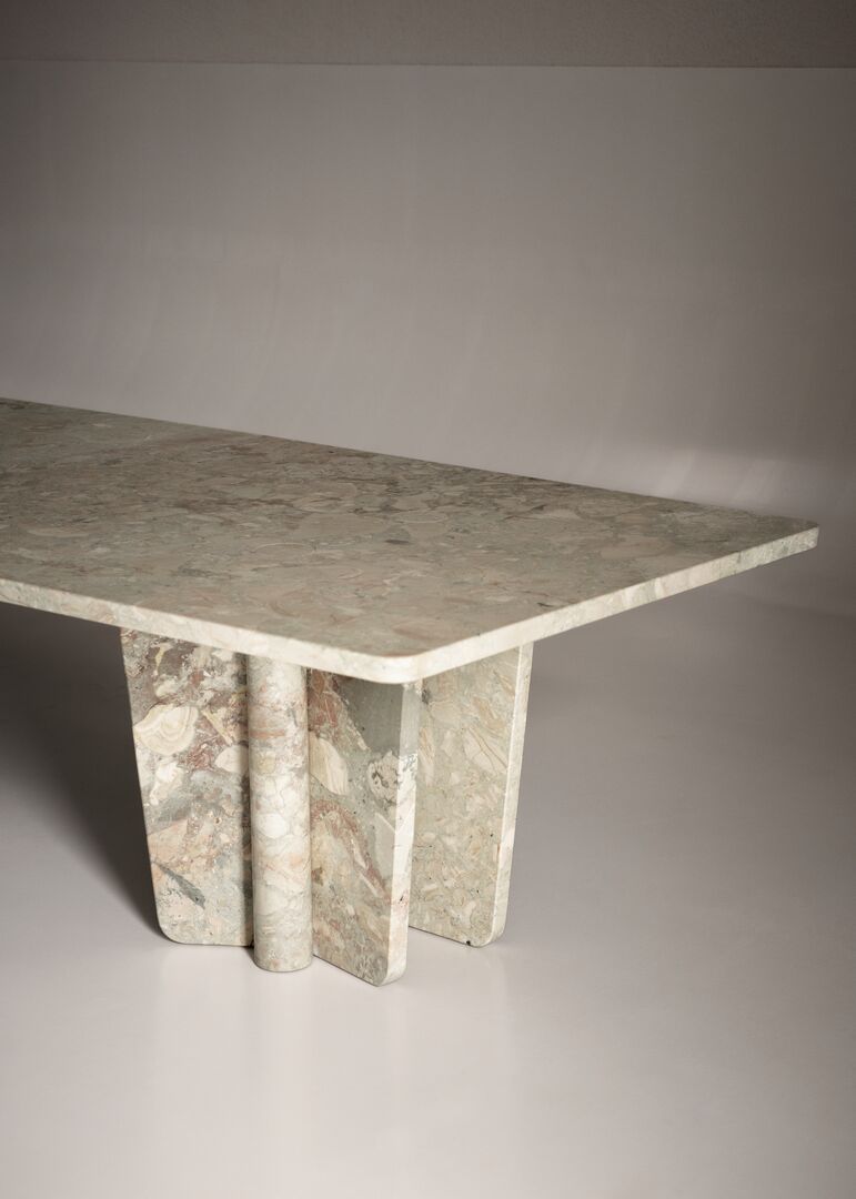 Архитектурные ножки сложной формы делают Kate не просто мебелью, а настоящим акцентом интерьера. Благодаря мастерству Baxter каждый элемент выполнен вручную, сохраняя подлинную фактуру и природный рисунок мрамора.