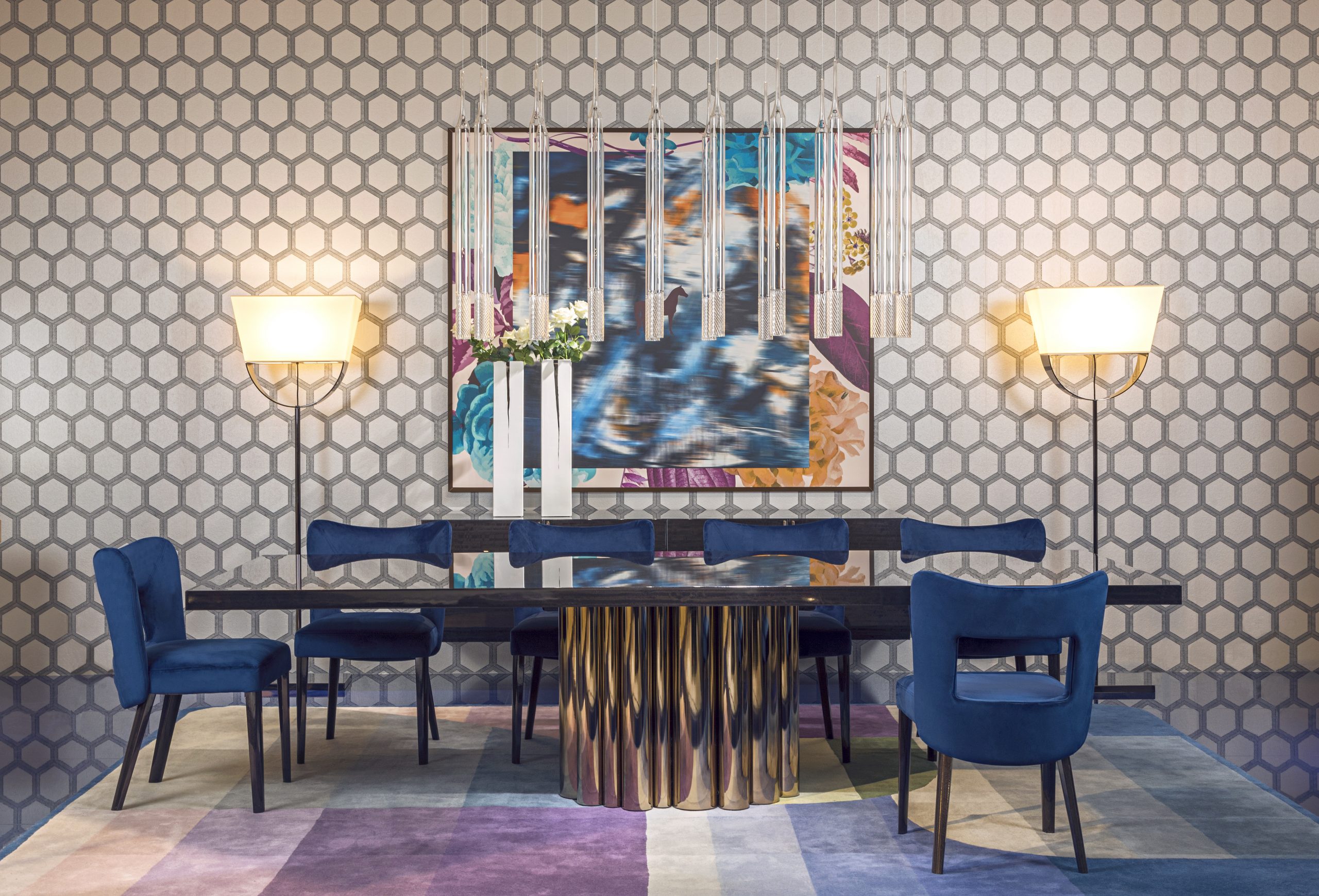 Обеденный стол Costantini Pietro SPLENDOR - это настоящий акцент в вашем интерьере. С этим столом вы получите просторное пространство для уютных семейных обедов и приятных встреч с друзьями. Фигурное основание из металла в золотом цвете придает столу изысканность и роскошь, что делает его настоящим произведением искусства.