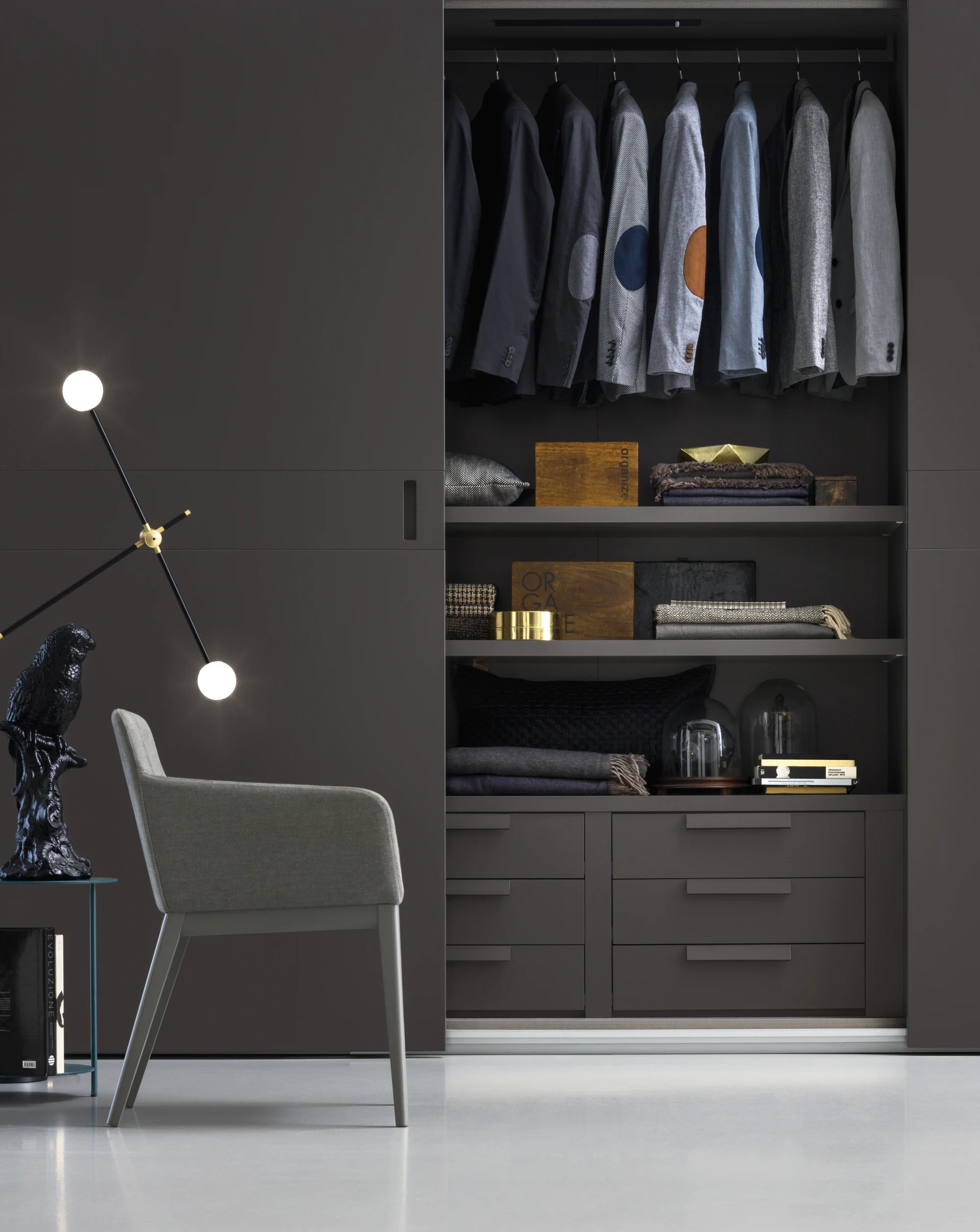 Спальни от Novamobili – это уютное и комфортное пространство, где можно расслабиться после тяжелого дня. В коллекции имеются разные размеры, прикроватные тумбочки, гардеробы, шкафы и другие элементы, которые определяют идеальную основу для отдыха.