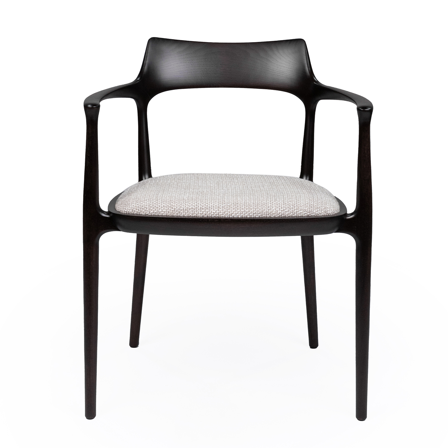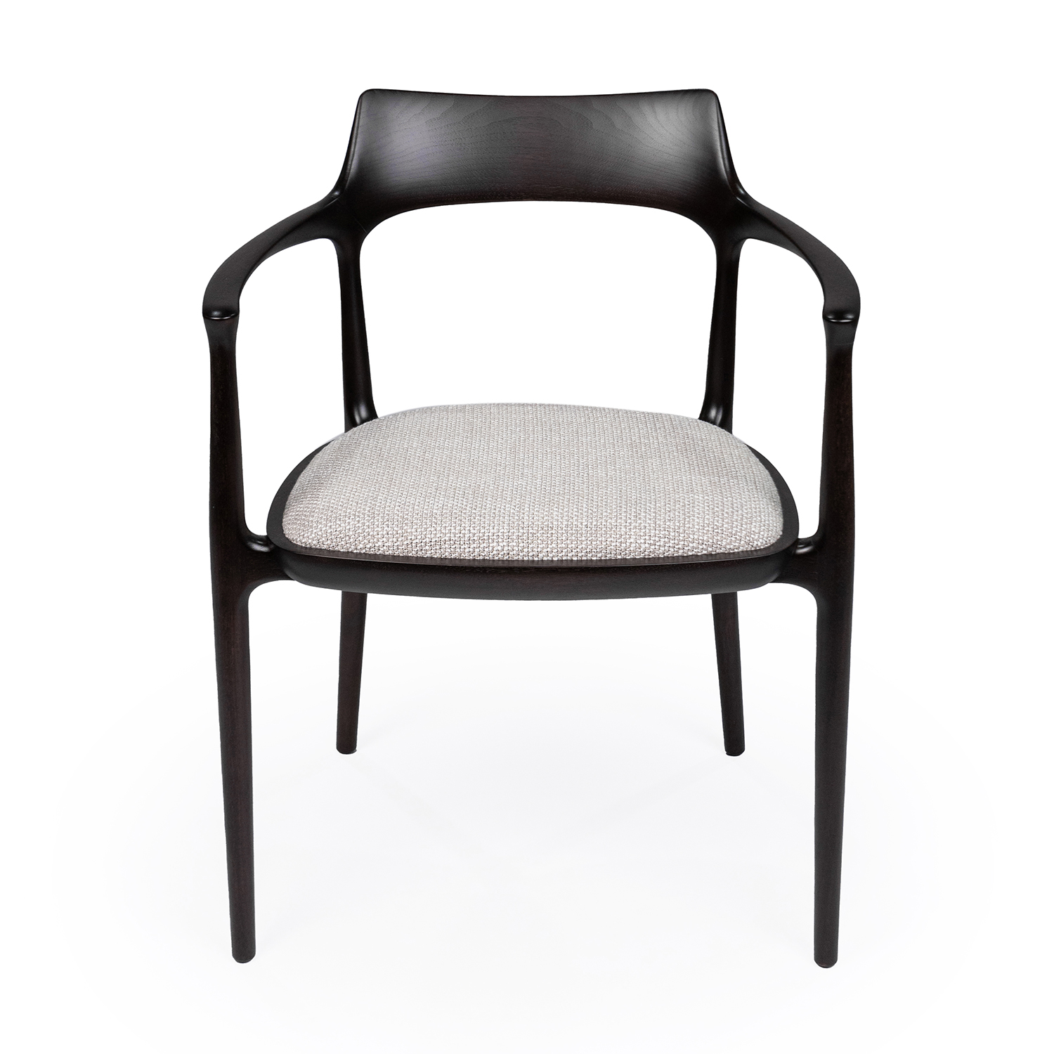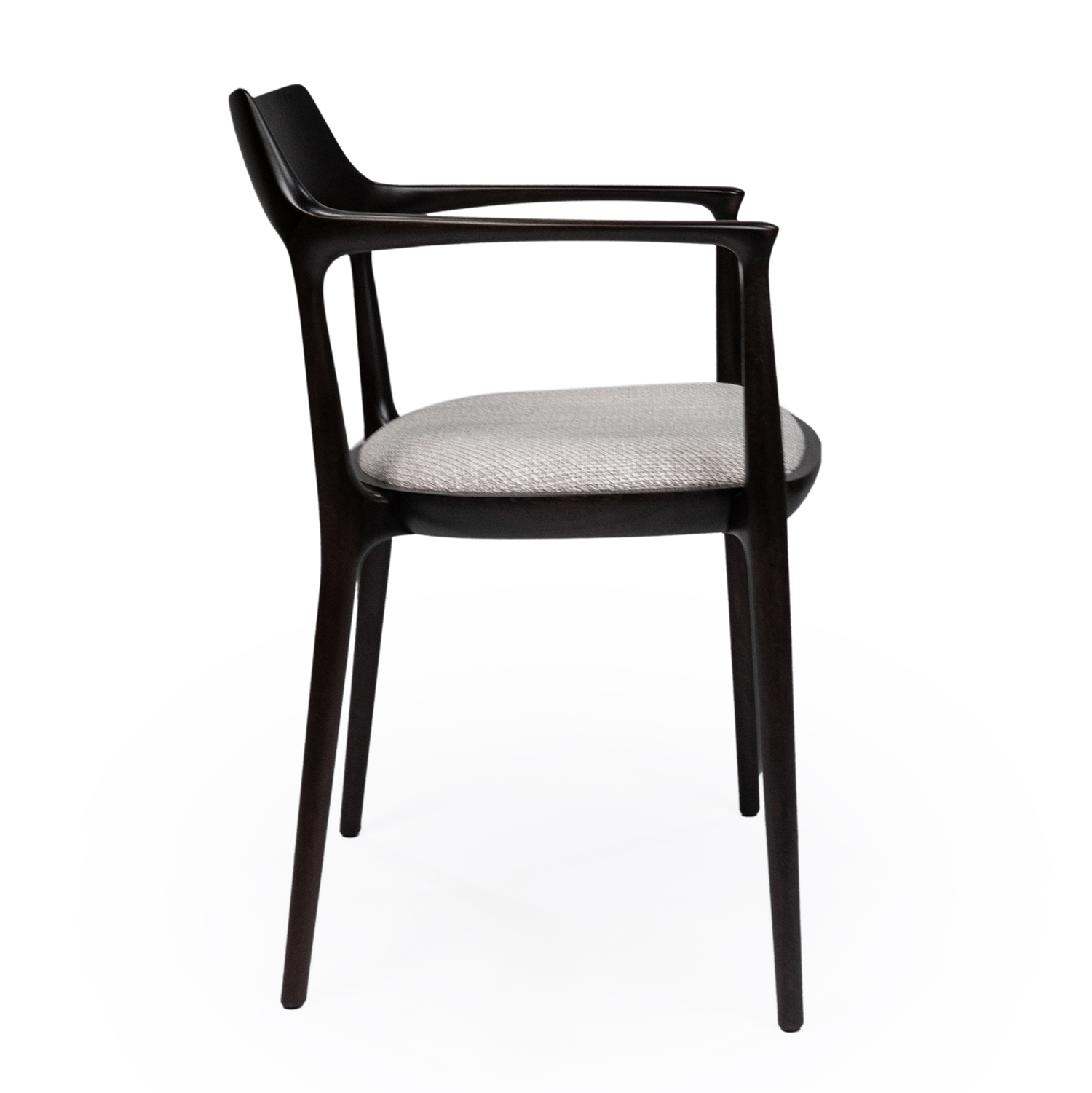 Обеденный стул Ceccotti Janine, разработанный Роберто Лаццерони, сочетает в себе лаконичный дизайн и натуральные материалы. Каркас из темного дерева придает ему строгий, но в то же время элегантный вид, а его плавные линии и обтекаемая форма способствуют комфортному размещению. Сиденье обито серой тканью, что добавляет мягкости и подчеркивает современный характер стула.