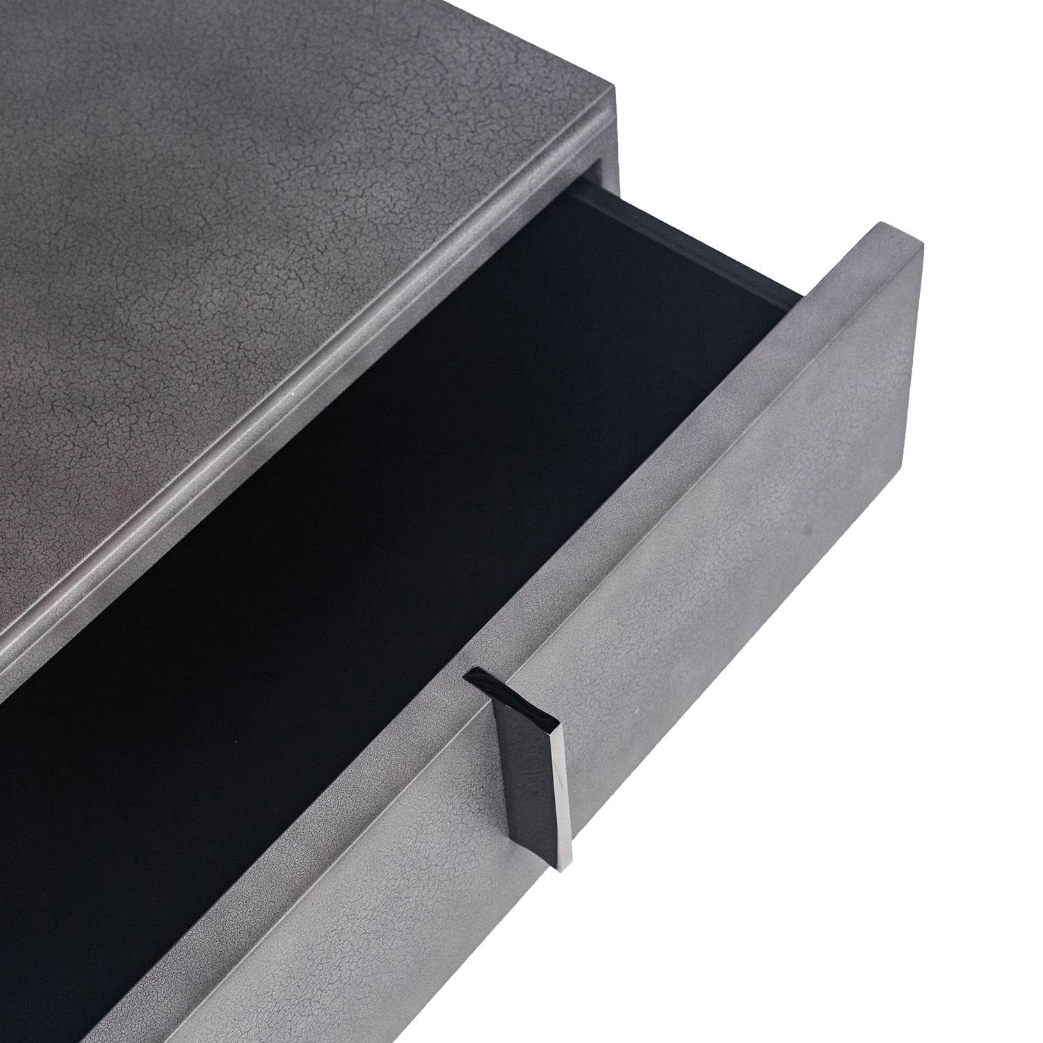 Прикроватная тумба Flou Ari, созданная E. Garbin и M. Dell’Orto, сочетает лаконичность форм с выразительными материалами. Корпус и фасады покрыты матовым лаком с текстурой, напоминающей кожу ската, что придаёт модели уникальный характер. Тонкие ручки выполнены в глянцевом тёмном никеле, создавая контраст с матовой поверхностью.