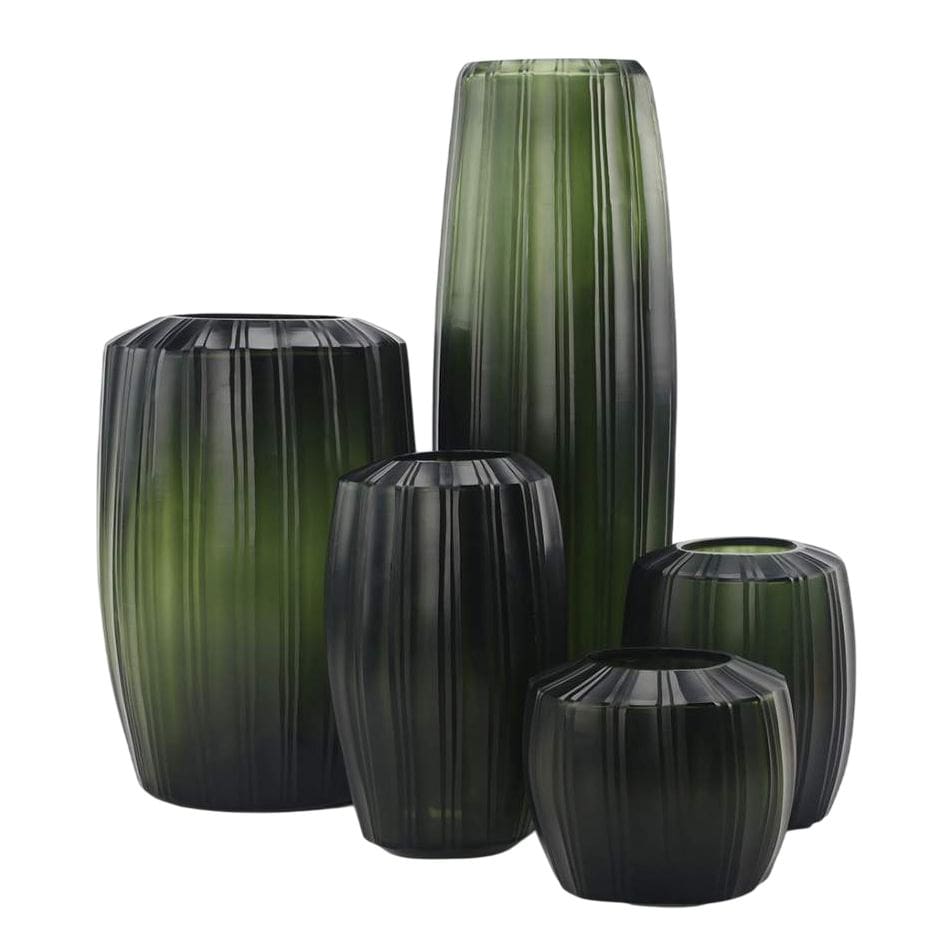 Ваза Guaxs Malibu XL в цвете Black Steelgrey — декоративный объект с выразительным высоким силуэтом и необычным сочетанием оттенков чёрного и зелёного. Глубокий цвет с тонкими переходами создаёт ощущение движения и придаёт стеклу живую, почти природную глубину.