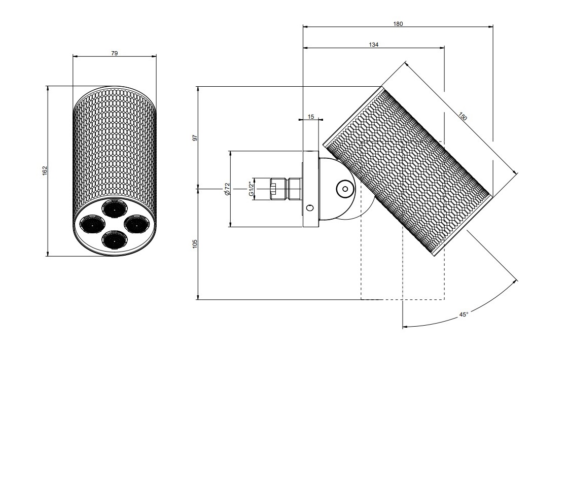 Верхний душ настенный, MULTISPRAY, регулируемый угол наклона.