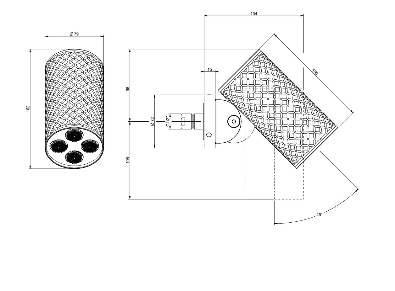 Верхний душ настенный, MULTISPRAY, регулируемый угол наклона.